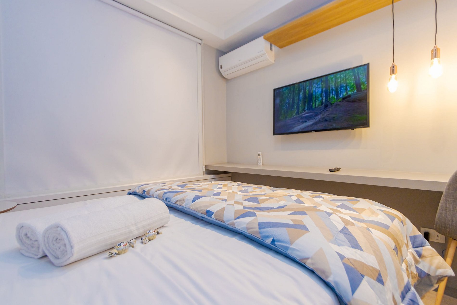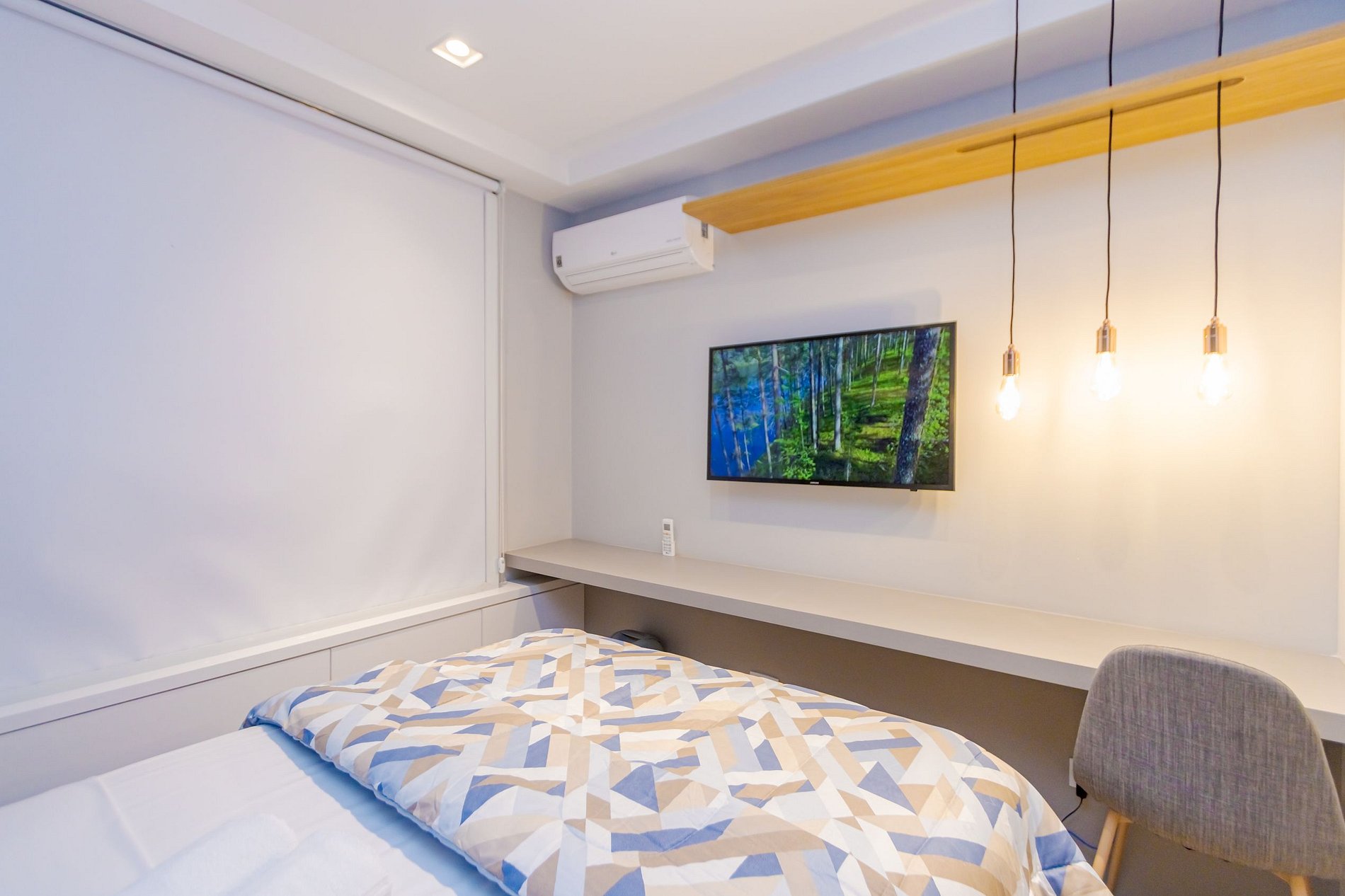⌂ Estúdio totalmente mobiliado que oferece as seguintes comodidades aos seus hospedes: