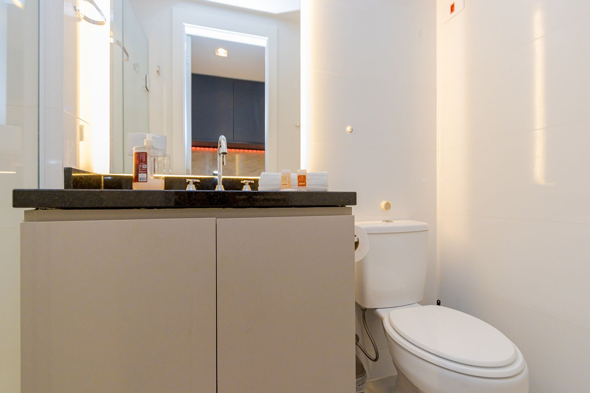 Durante a sua estadia não temos serviço de quarto e nem fazemos a reposição dos itens da sua unidade como: shampoo, condicionador, sabonete, papel higiênico, pano de prato, esponja e detergente de louça, além de pilhas do controle remoto, ar-condicionado e da fechadura eletrônica. A reposição destes itens é de responsabilidade do hóspede titular da reserva.
