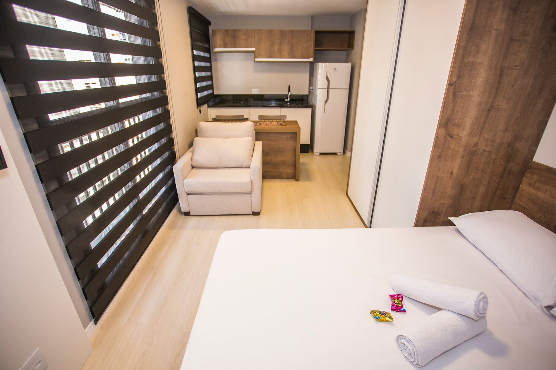 ⌂ Estúdio totalmente mobiliado que oferece as seguintes comodidades aos seus hospedes: