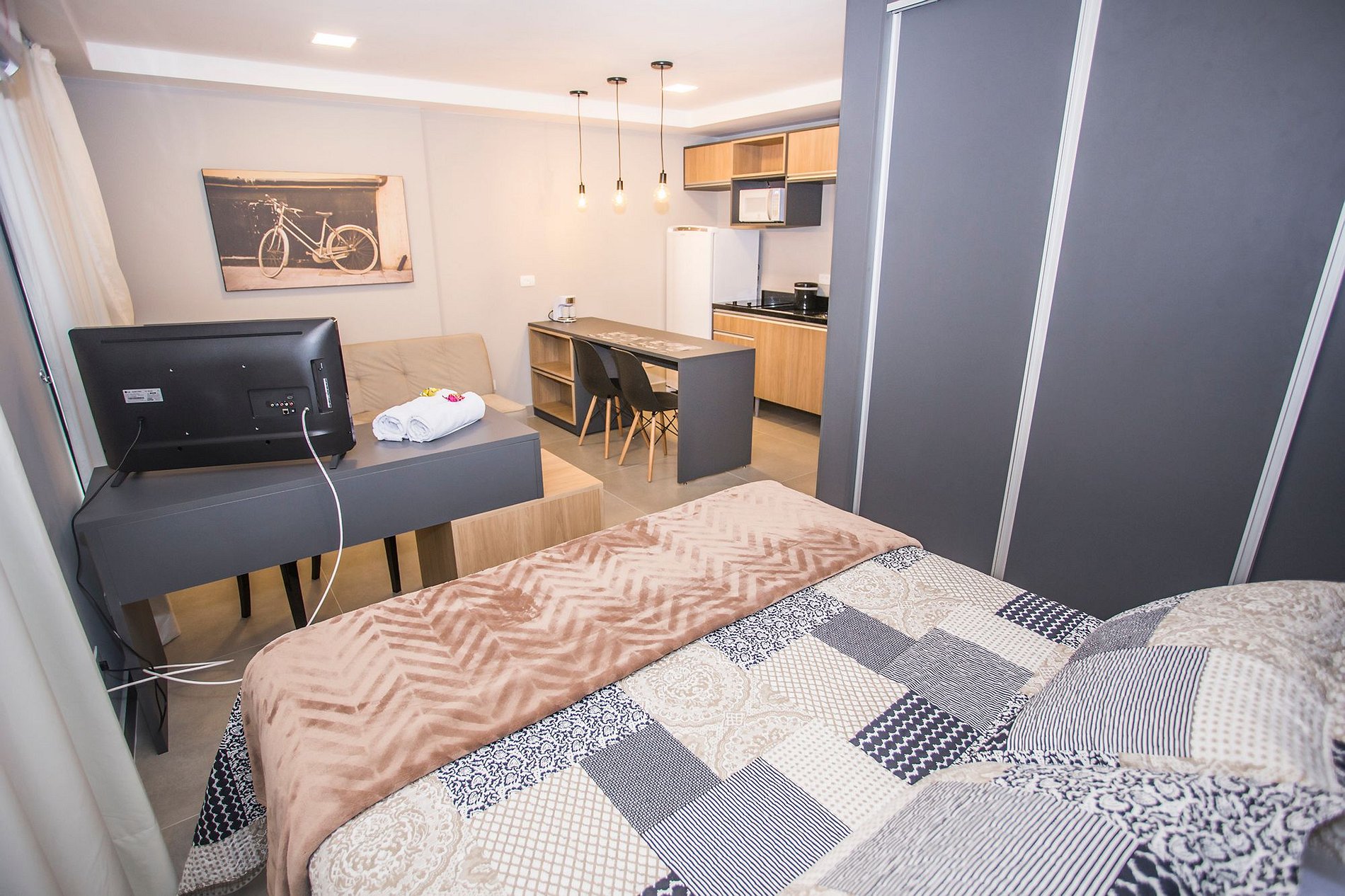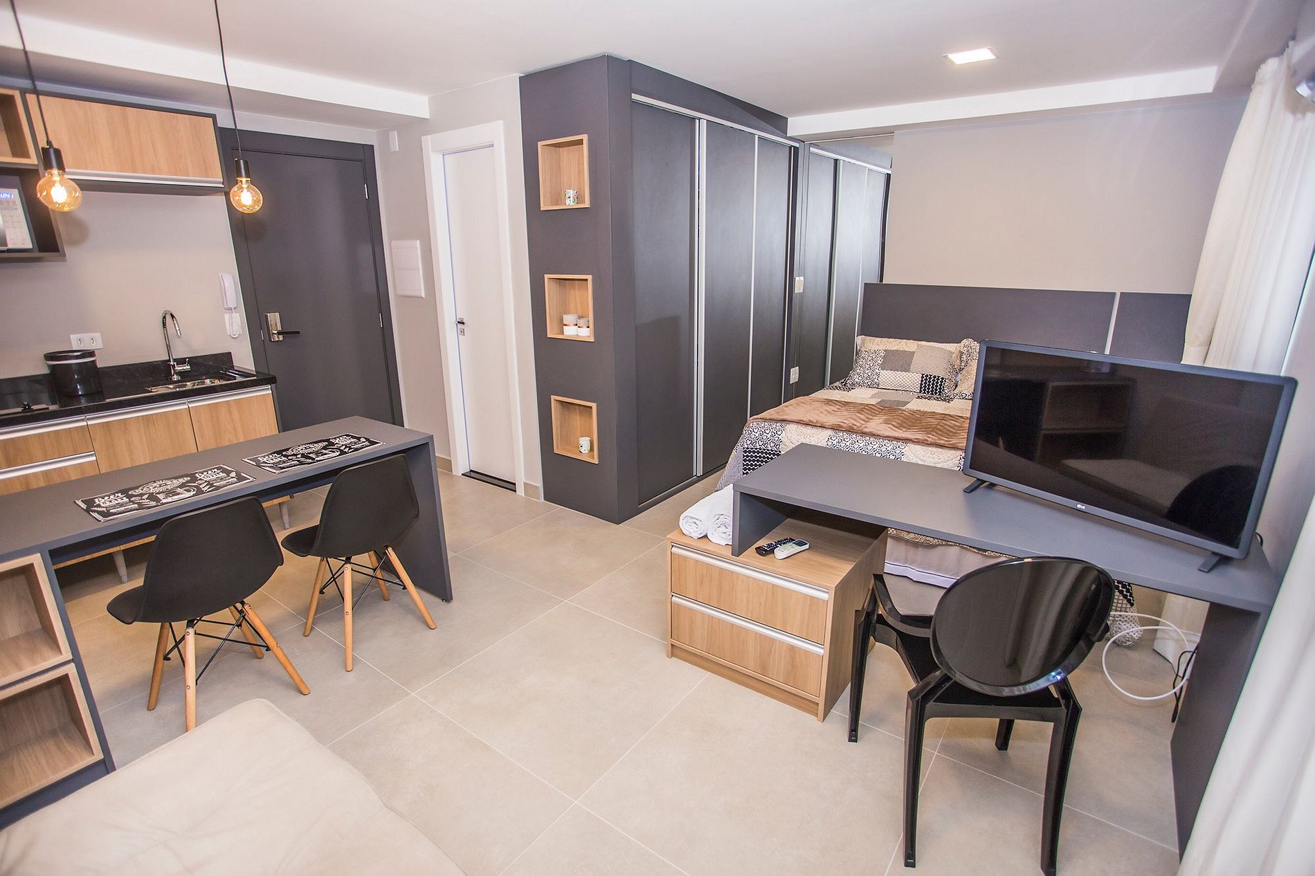 ⌂ Estúdio totalmente mobiliado que oferece as seguintes comodidades aos seus hospedes: