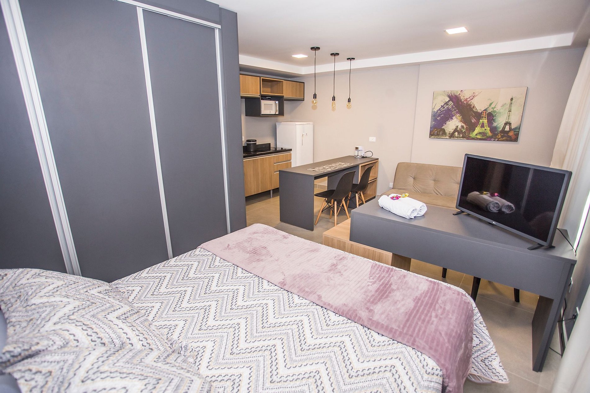 ⌂ Estúdio totalmente mobiliado que oferece as seguintes comodidades aos seus hospedes: