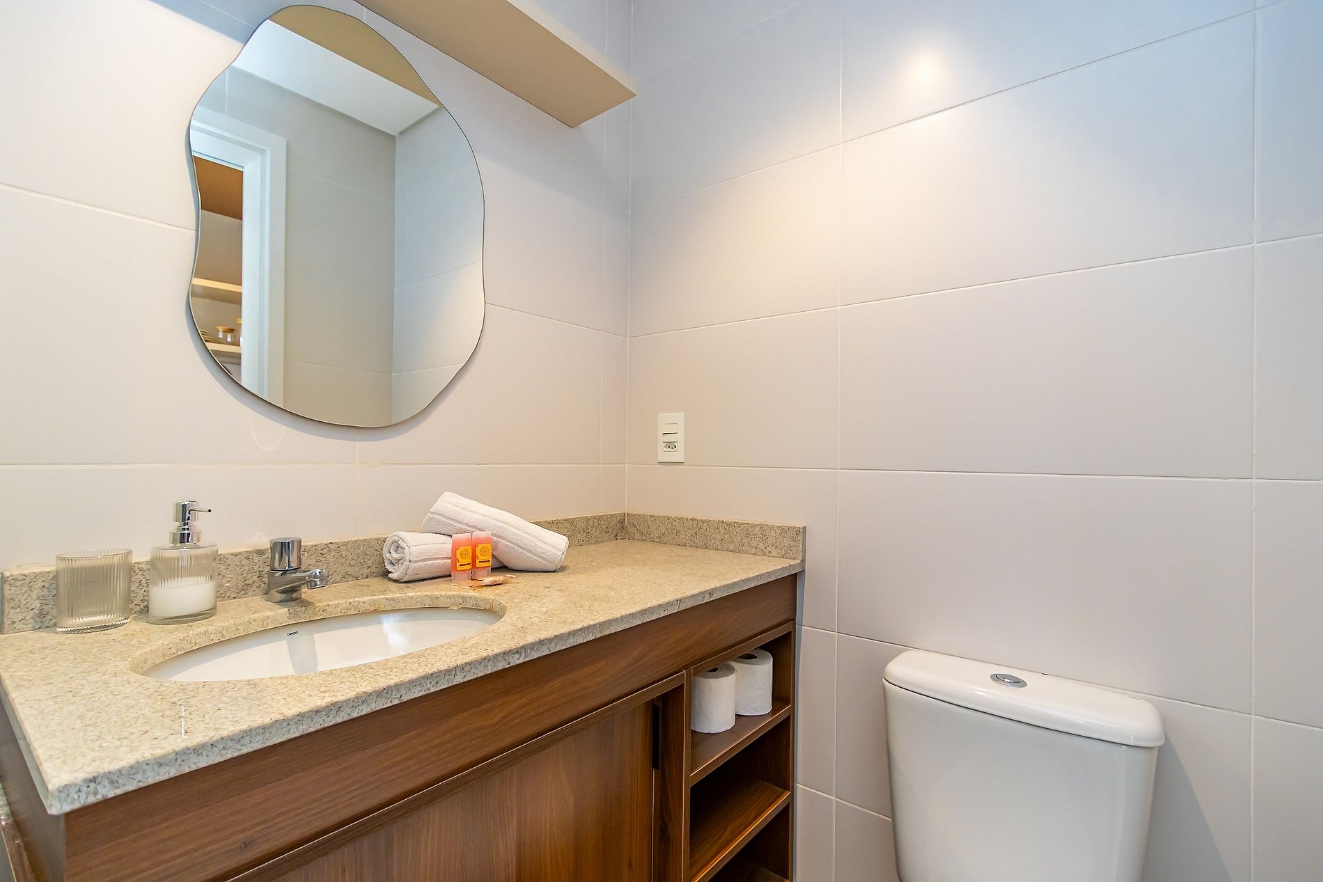 Durante a sua estadia não temos serviço de quarto e nem fazemos a reposição dos itens da sua unidade como: shampoo, condicionador, sabonete, papel higiênico, pano de prato, esponja e detergente de louça, além de pilhas do controle remoto, ar-condicionado e da fechadura eletrônica. A reposição destes itens é de responsabilidade do hóspede titular da reserva.