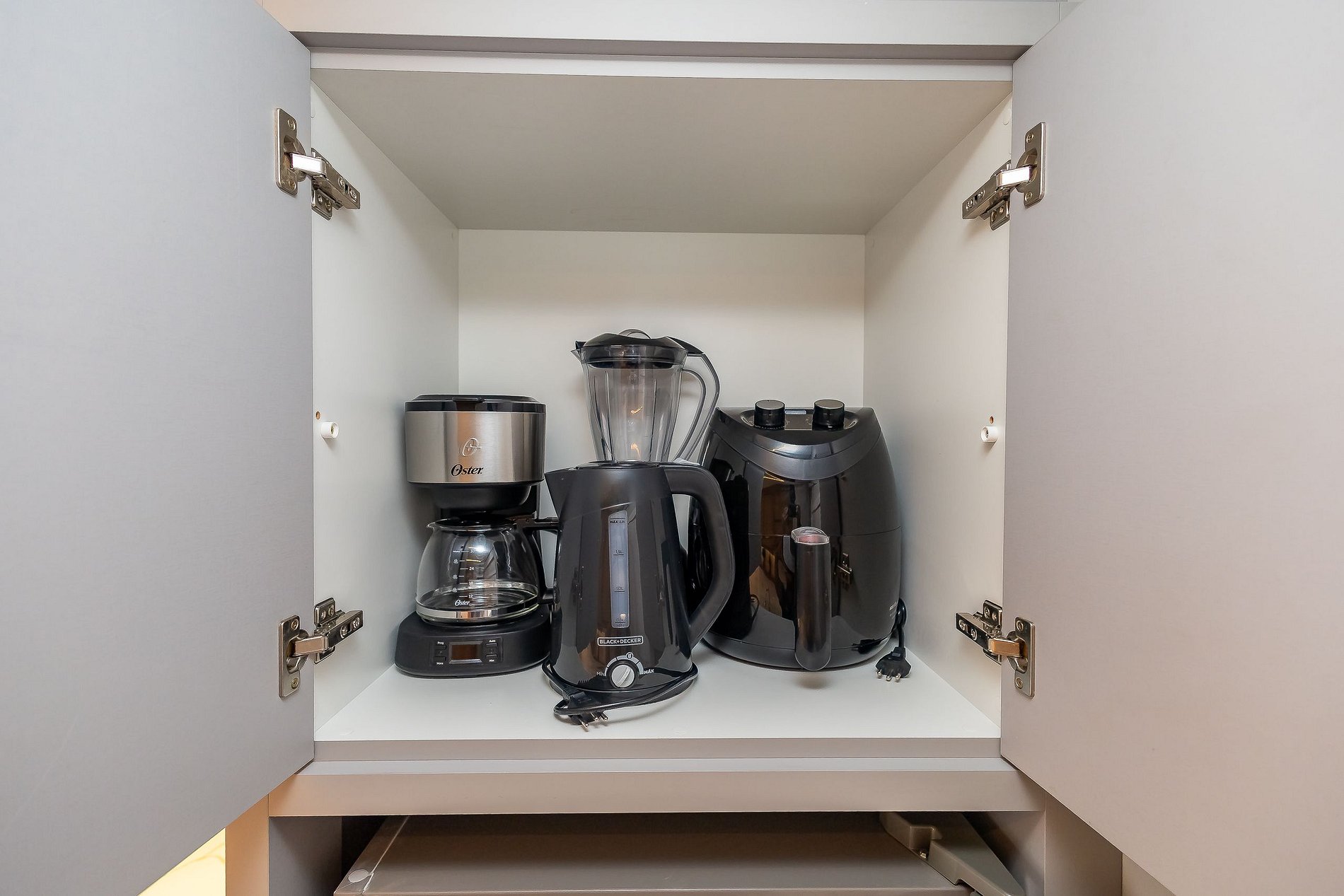 • O apartamento possui fechadura eletrônica, para aparecer o teclado numérico encoste a mão na fechadura, digite a senha e aperte o botão do cadeado aberto;