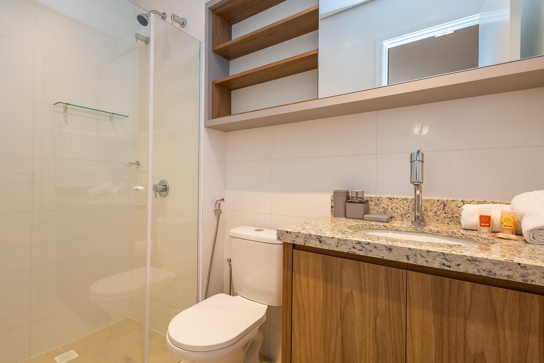 Durante a sua estadia não temos serviço de quarto e nem fazemos a reposição dos itens da sua unidade como: shampoo, condicionador, sabonete, papel higiênico, pano de prato, esponja e detergente de louça, além de pilhas do controle remoto, ar-condicionado e da fechadura eletrônica. A reposição destes itens é de responsabilidade do hóspede titular da reserva.
