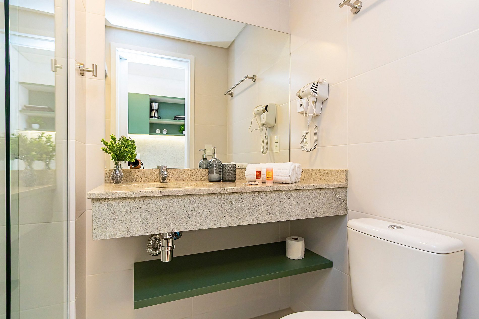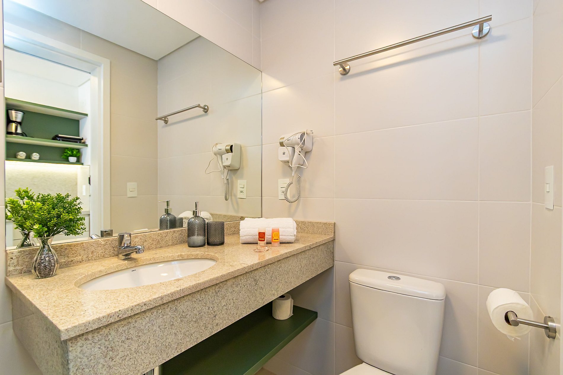 Durante a sua estadia não temos serviço de quarto e nem fazemos a reposição dos itens da sua unidade como: shampoo, condicionador, sabonete, papel higiênico, pano de prato, esponja e detergente de louça, além de pilhas do controle remoto, ar-condicionado e da fechadura eletrônica. A reposição destes itens é de responsabilidade do hóspede titular da reserva.