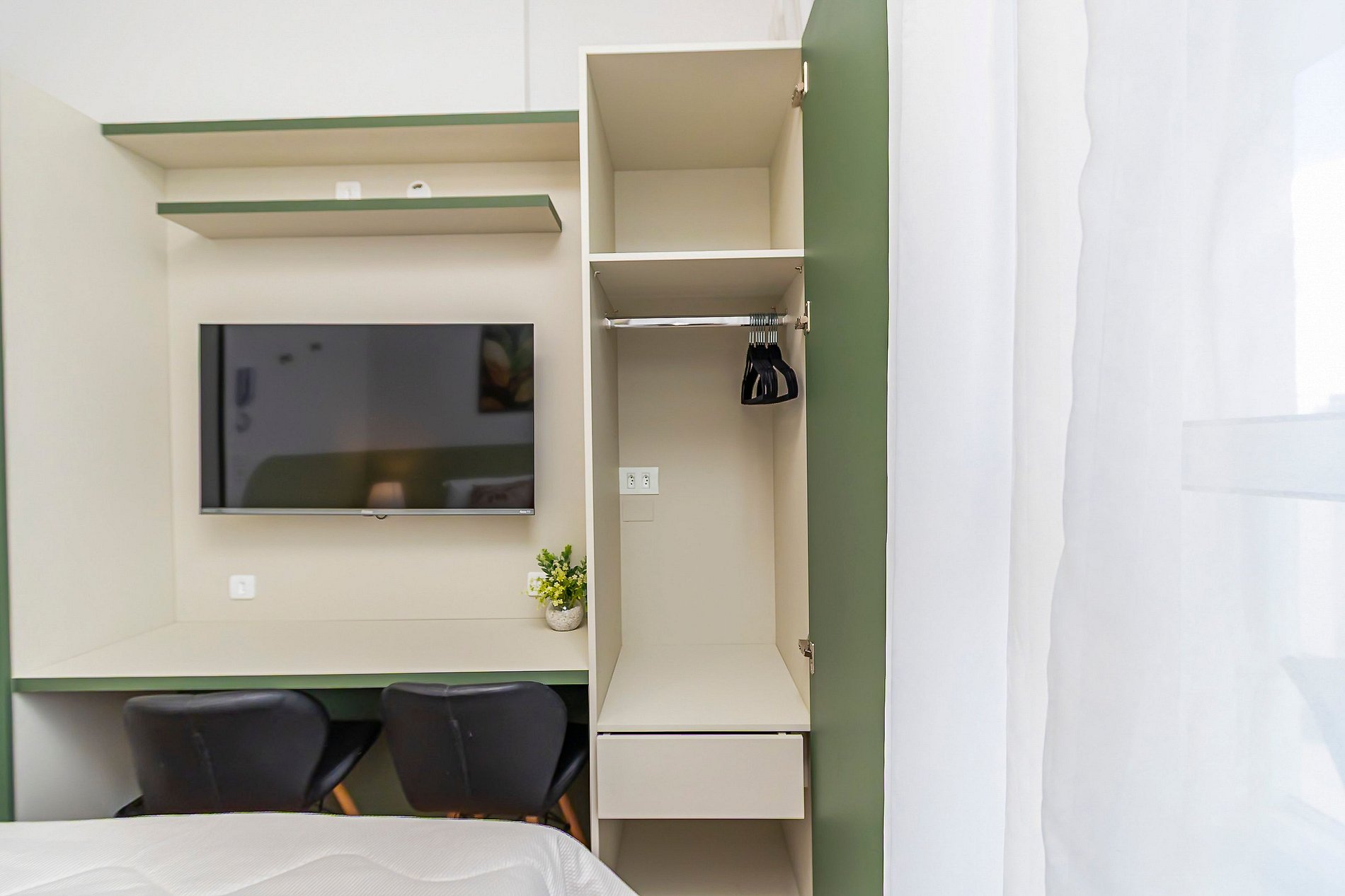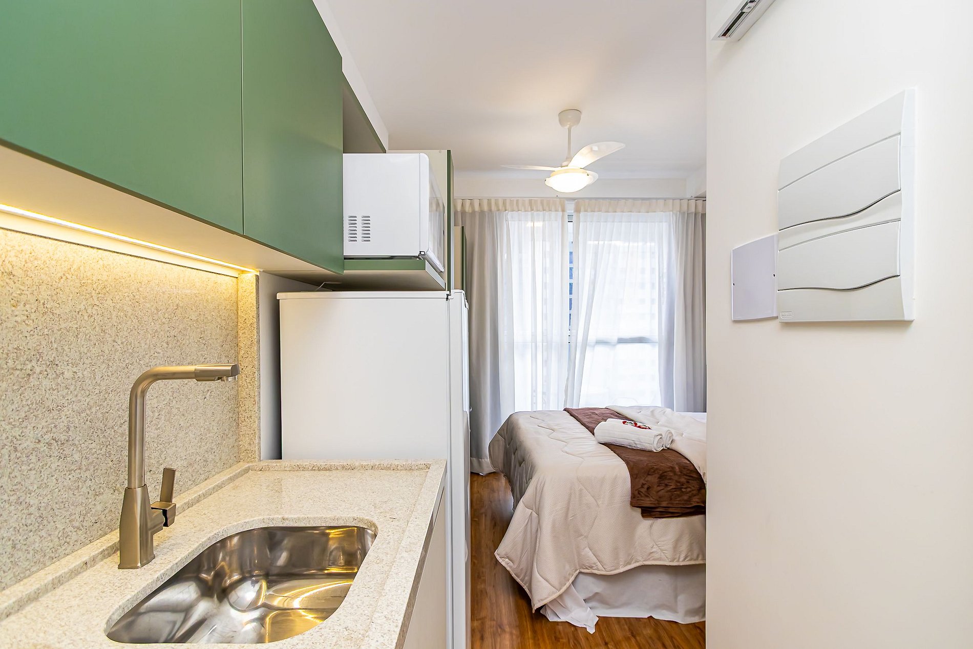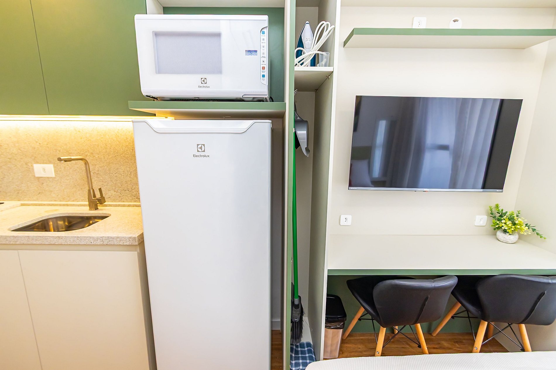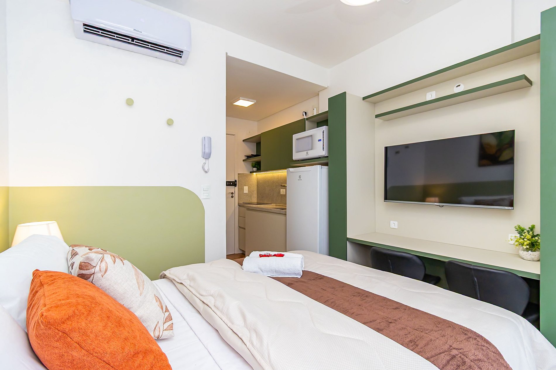 ⌂ Studio totalmente mobiliado que oferece as seguintes comodidades aos seus hóspedes: