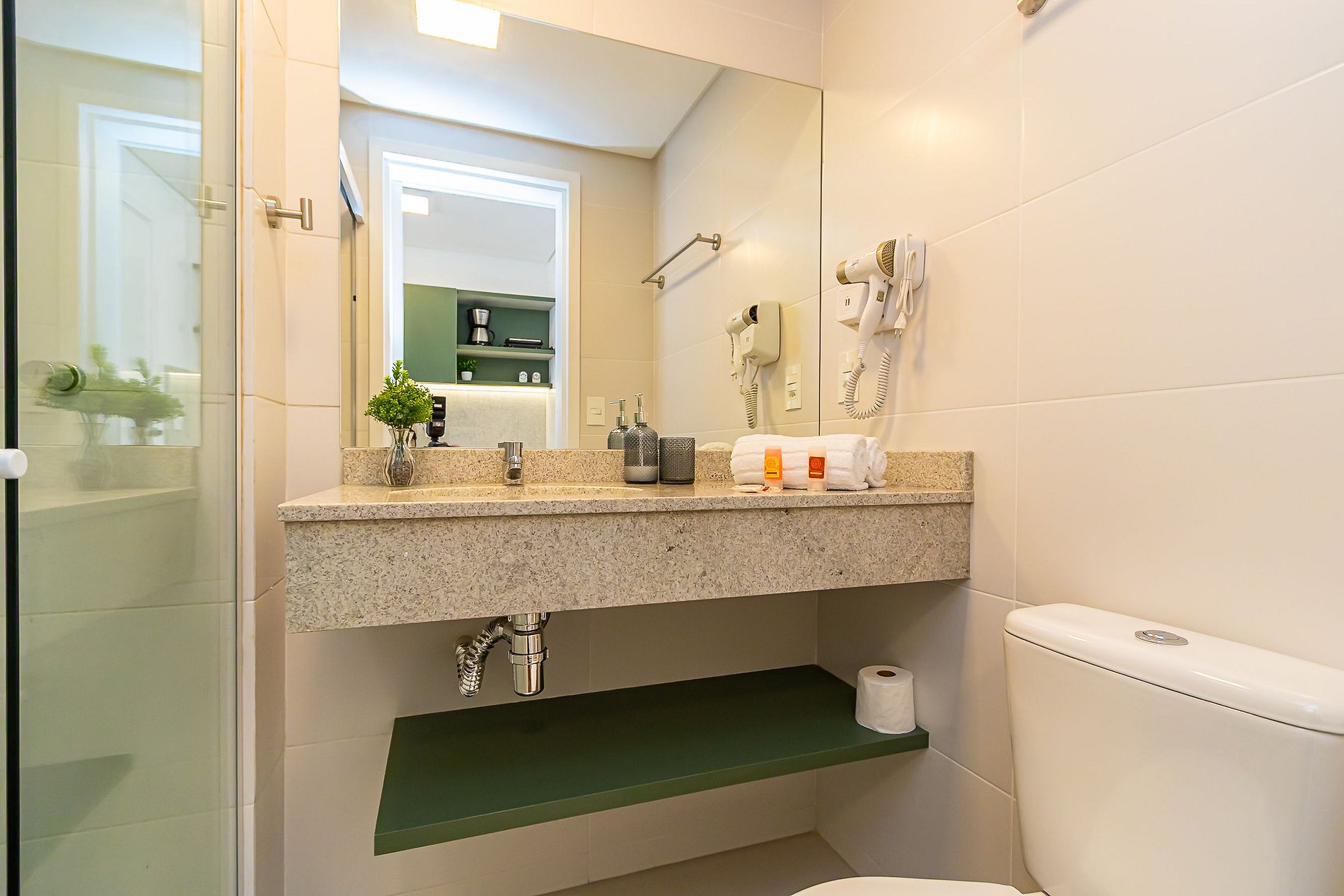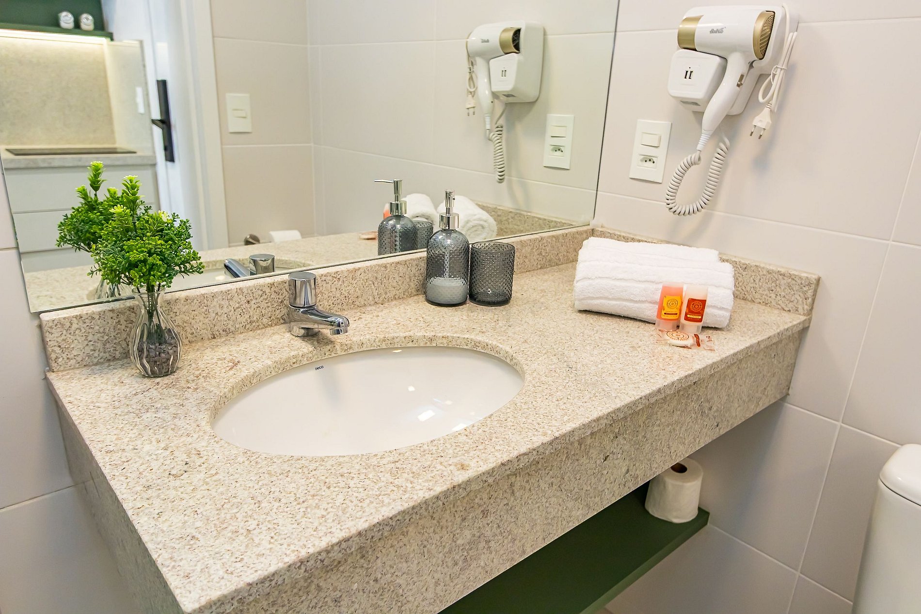 Durante a sua estadia não temos serviço de quarto e nem fazemos a reposição dos itens da sua unidade como: shampoo, condicionador, sabonete, papel higiênico, pano de prato, esponja e detergente de louça, além de pilhas do controle remoto, ar-condicionado e da fechadura eletrônica. A reposição destes itens é de responsabilidade do hóspede titular da reserva.