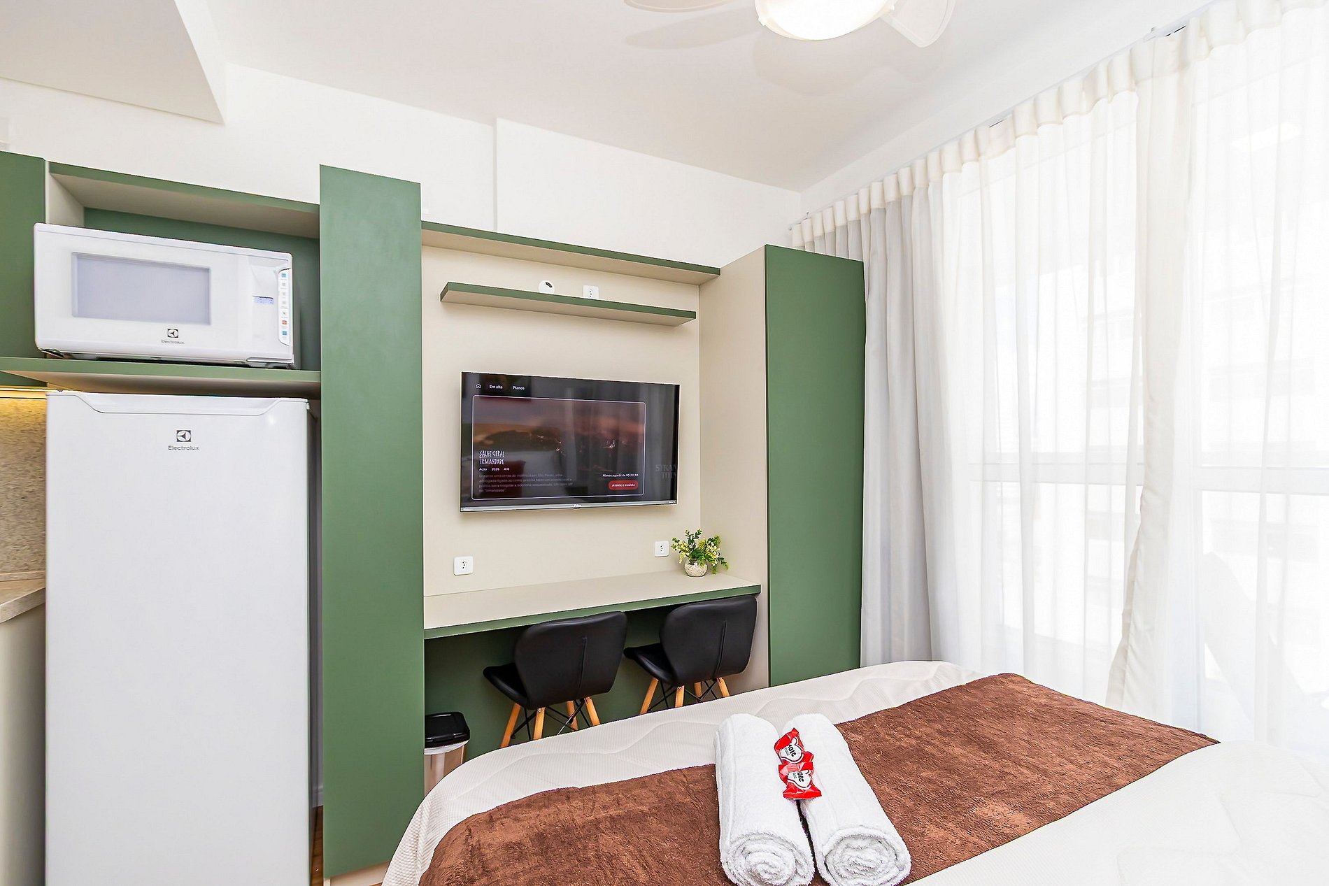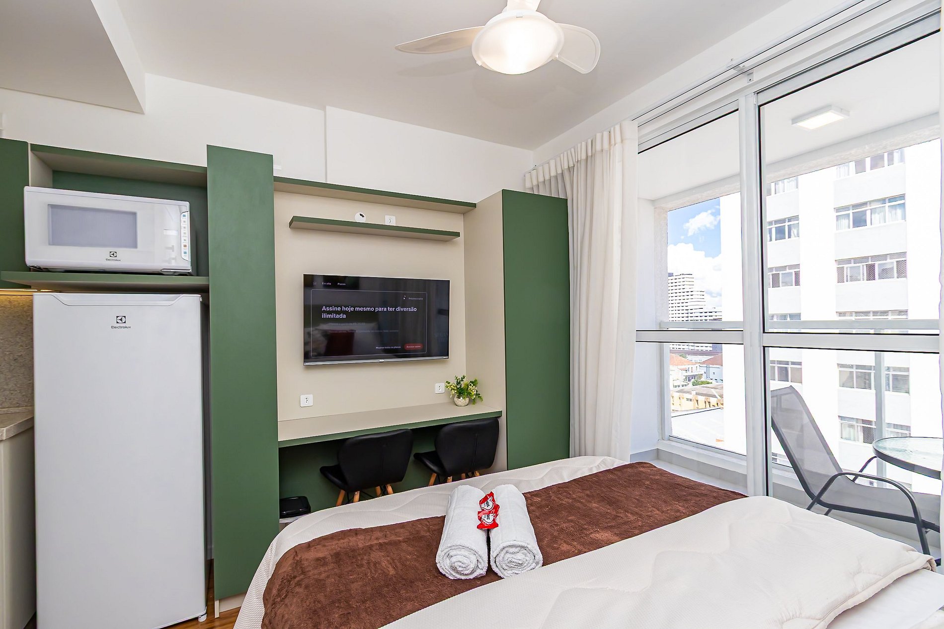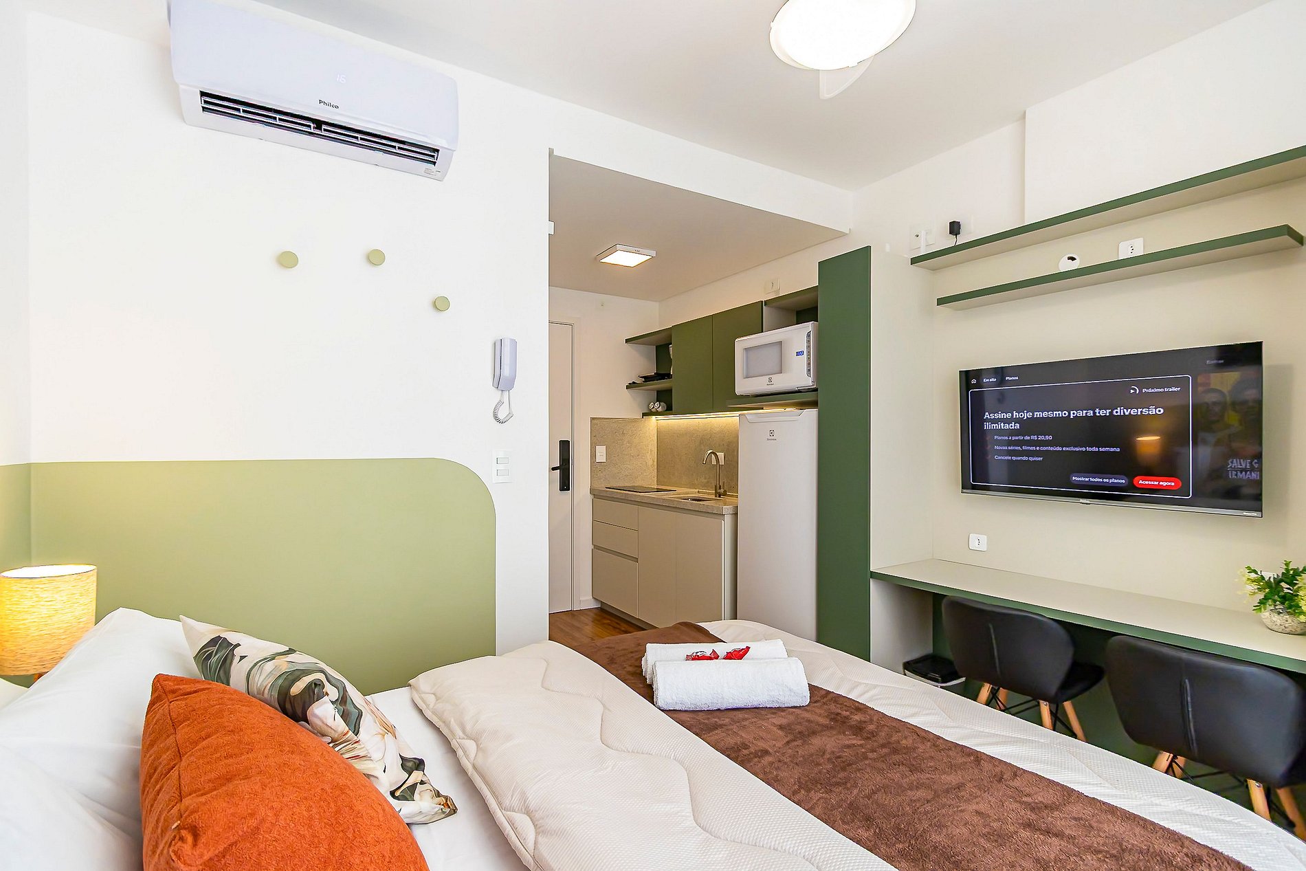 ⌂ Studio totalmente mobiliado que oferece as seguintes comodidades aos seus hóspedes: