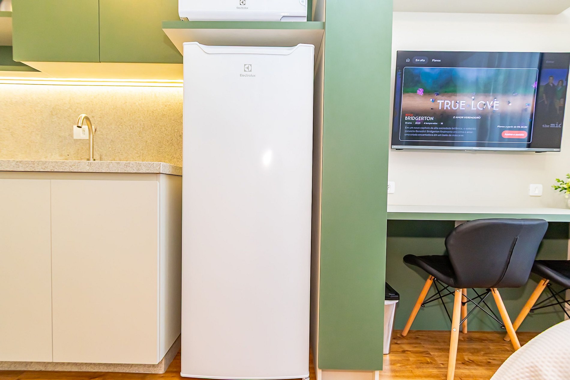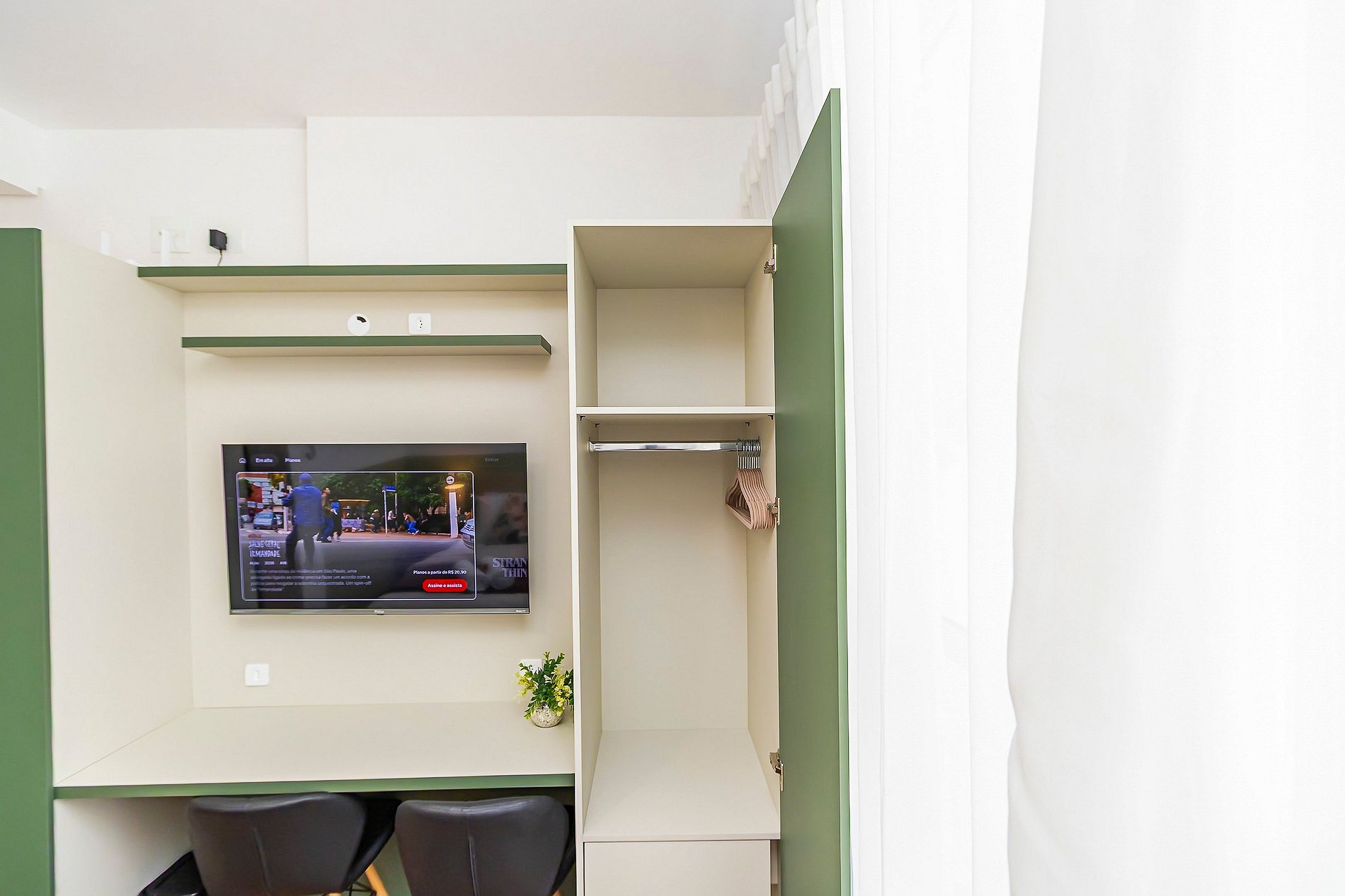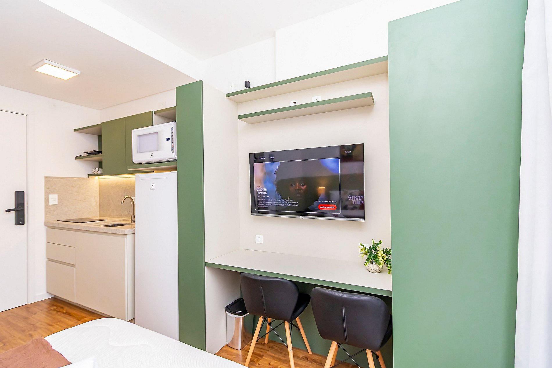 ⌂ Studio totalmente mobiliado que oferece as seguintes comodidades aos seus hóspedes: