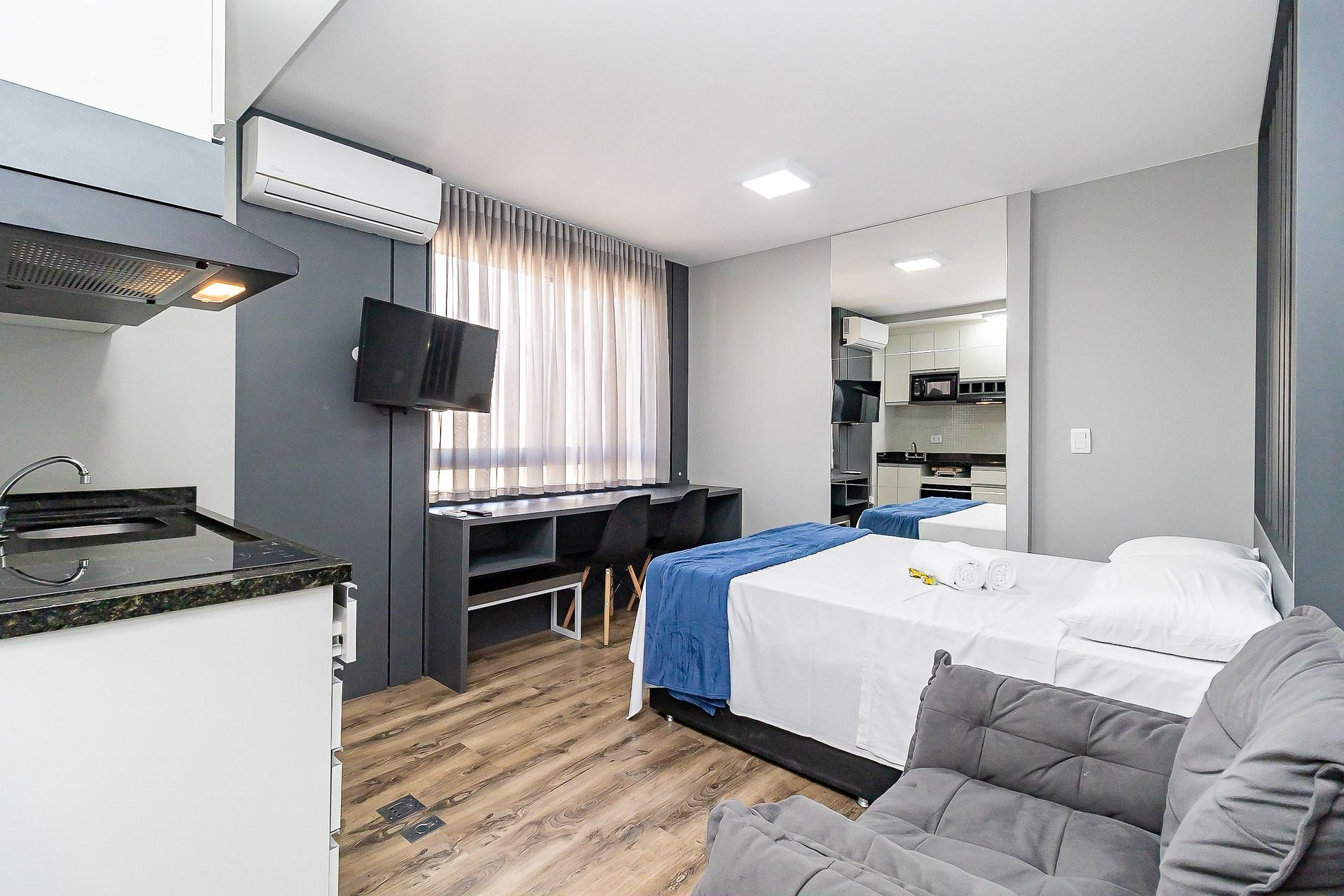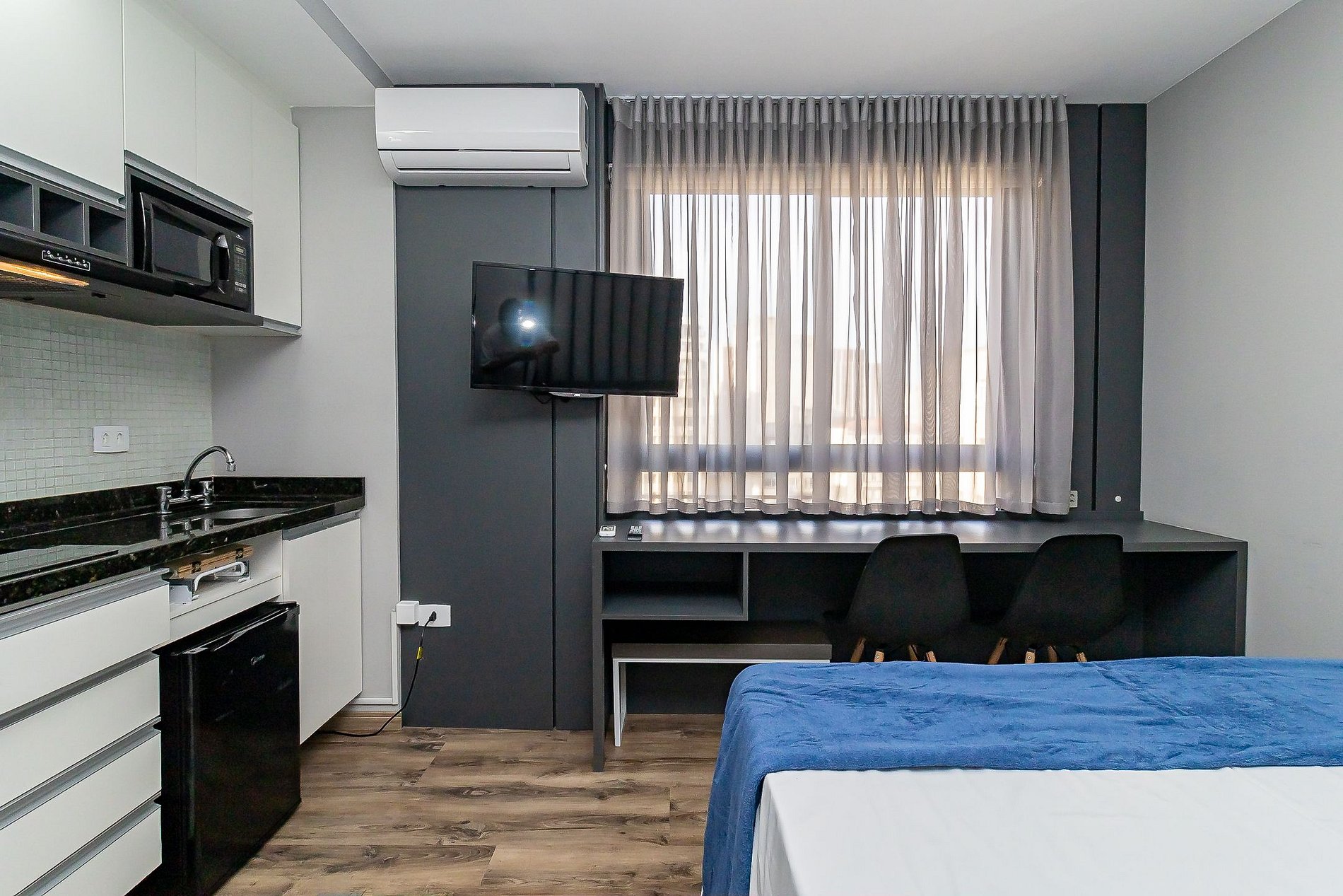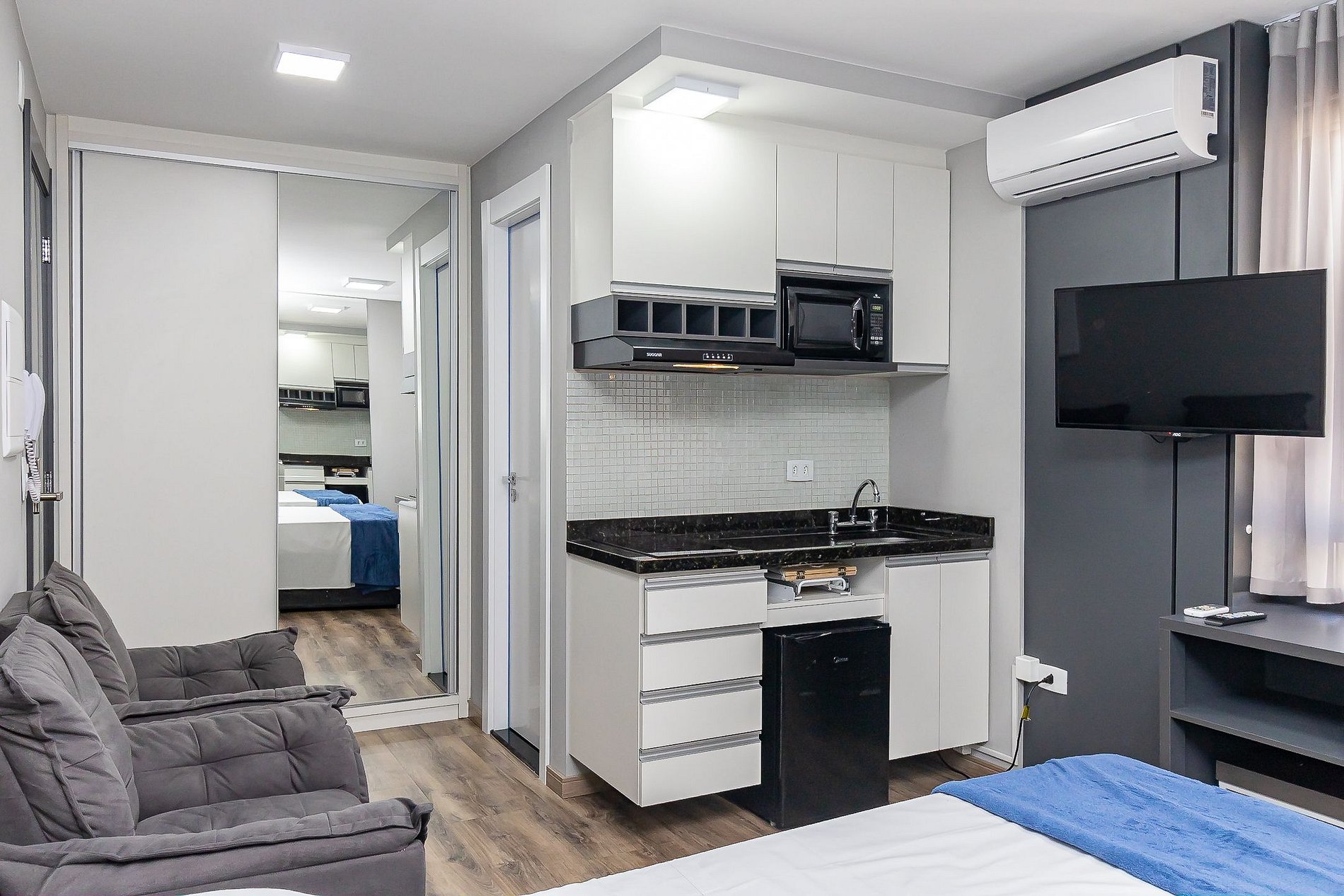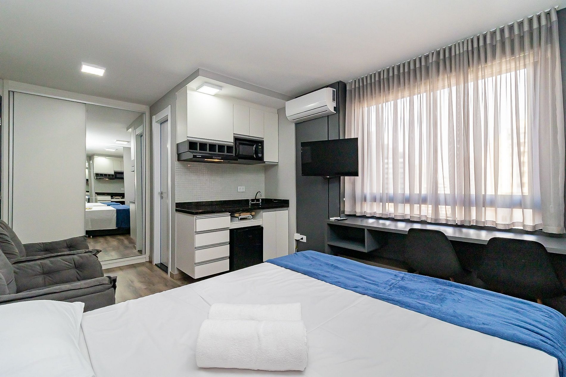 ⌂ Estúdio totalmente mobiliado que oferece as seguintes comodidades aos seus hospedes: