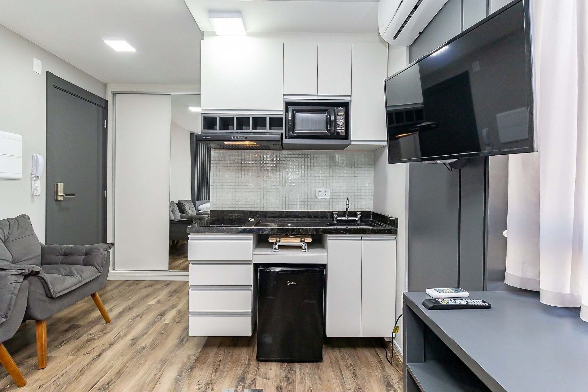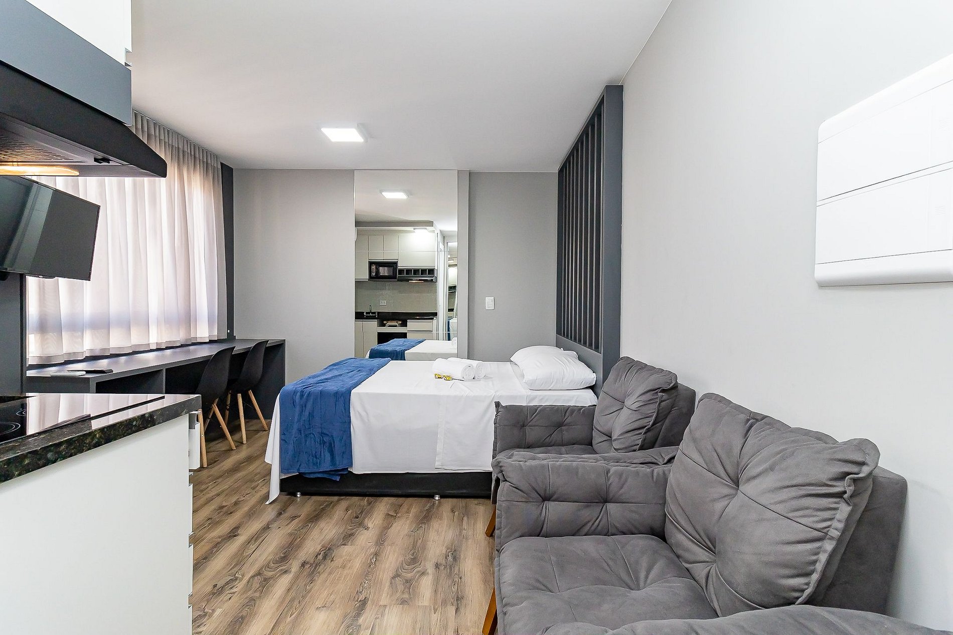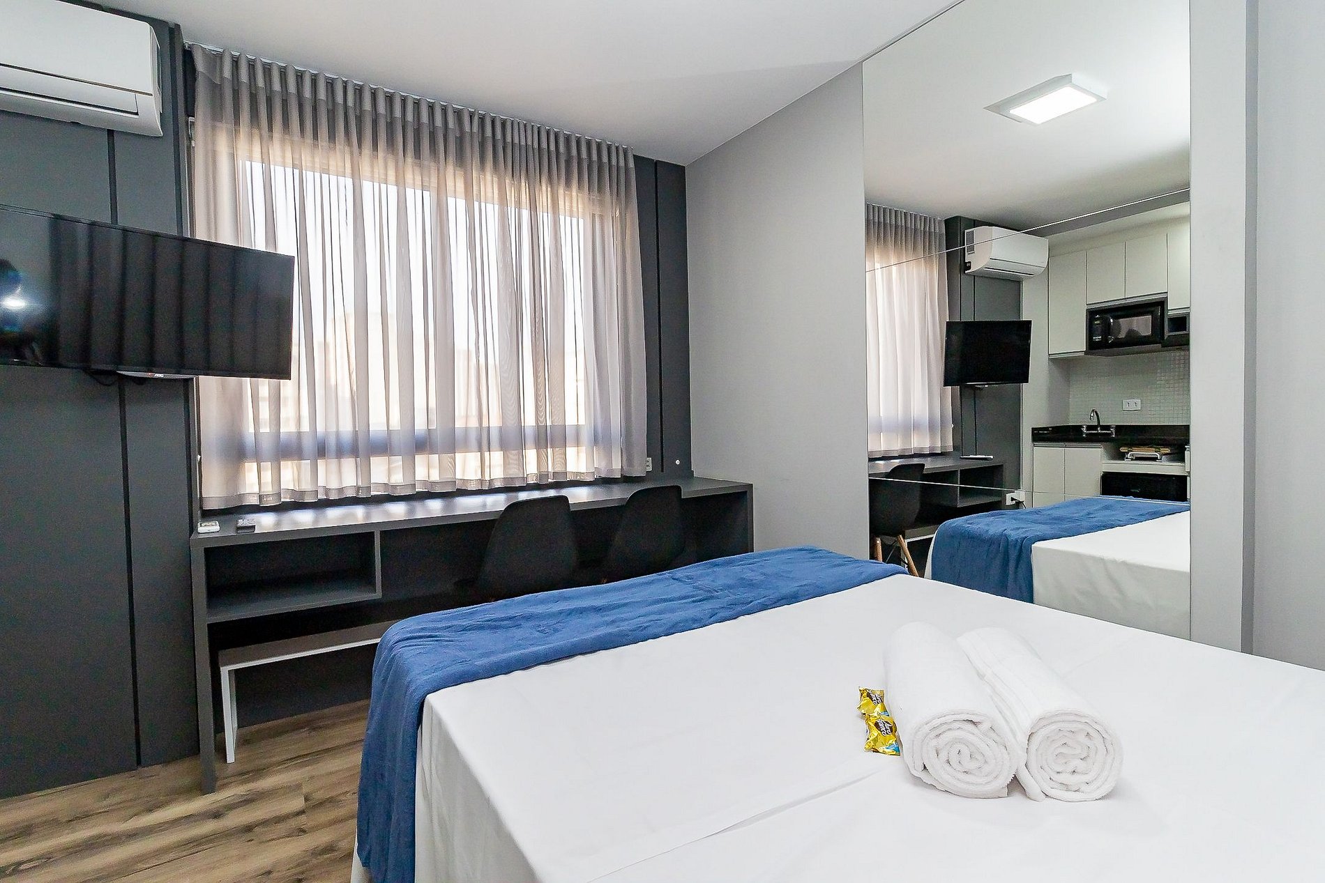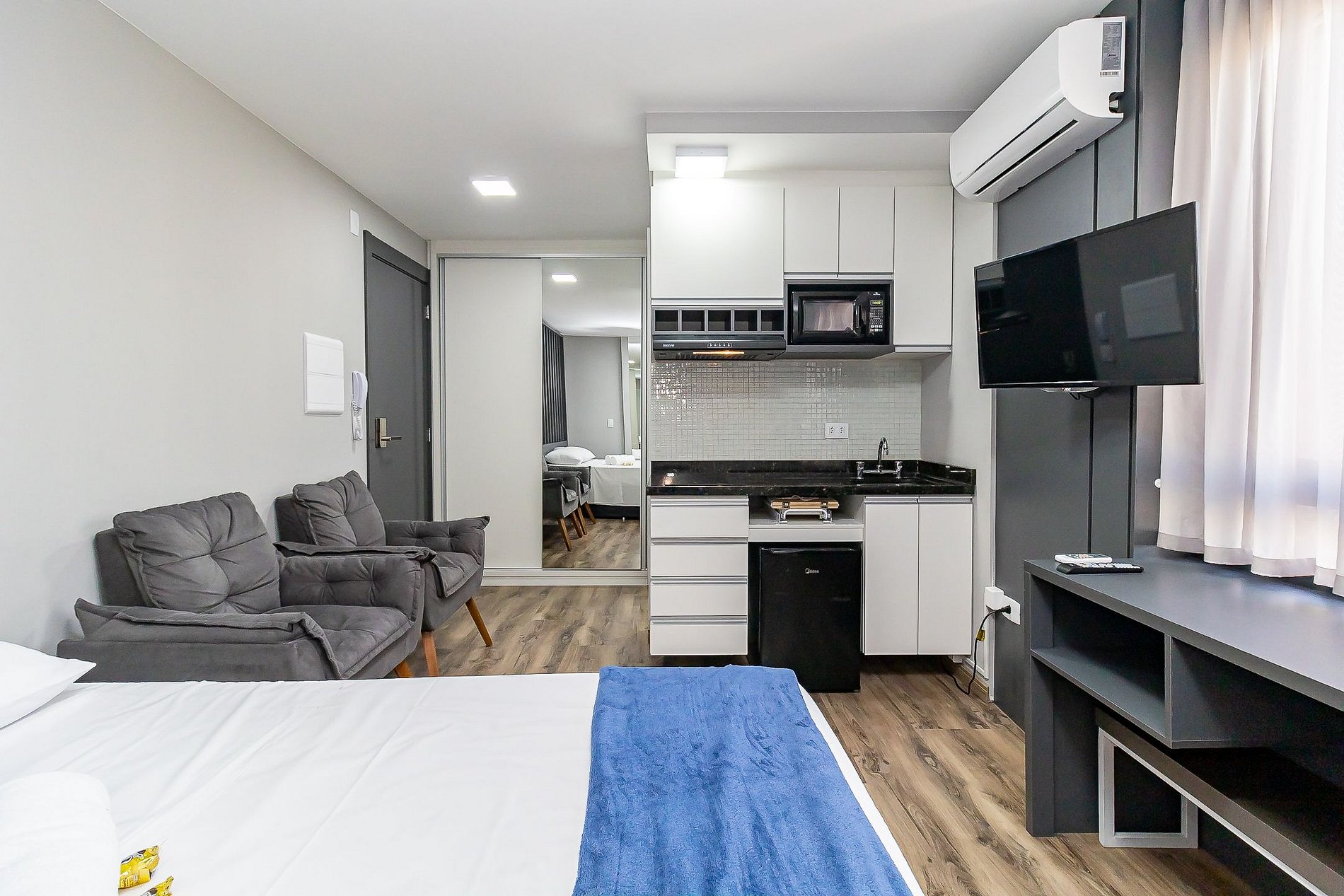⌂ Estúdio totalmente mobiliado que oferece as seguintes comodidades aos seus hospedes: