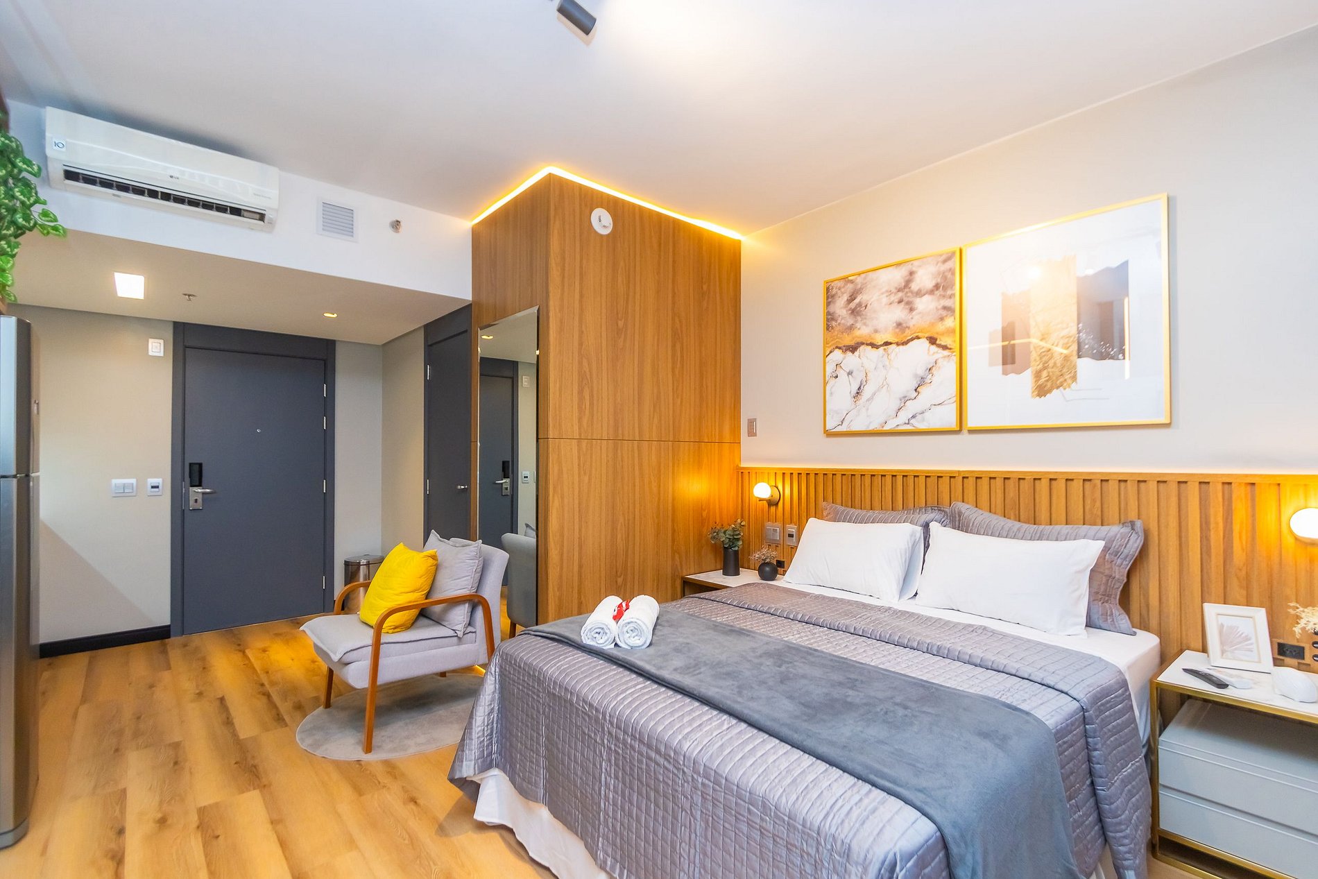 ⌂ Estúdio totalmente mobiliado que oferece as seguintes comodidades aos seus hóspedes: