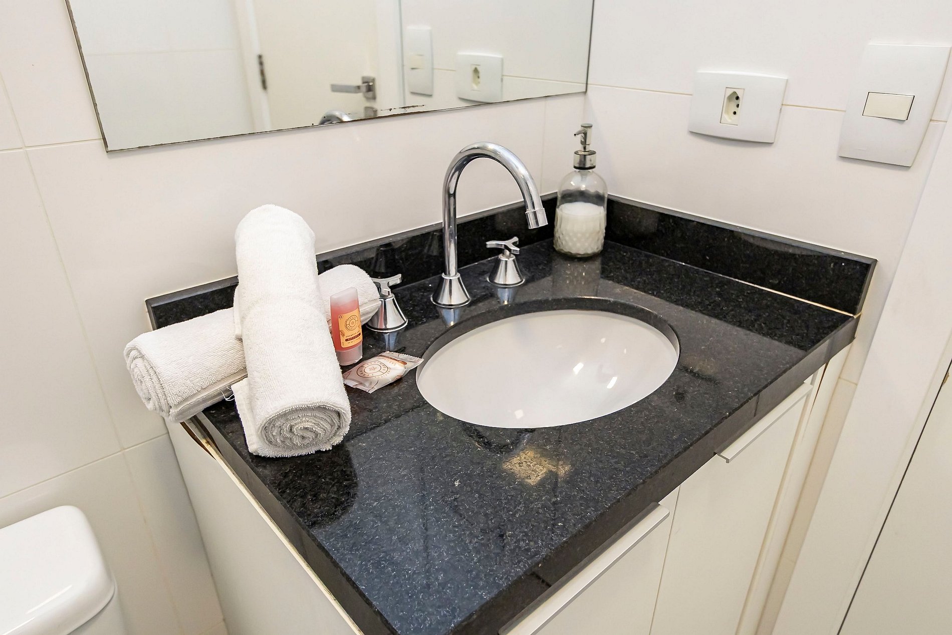 Durante a sua estadia não temos serviço de quarto e nem fazemos a reposição dos itens da sua unidade como: shampoo, condicionador, sabonete, papel higiênico, pano de prato, esponja e detergente de louça, além de pilhas do controle remoto, ar-condicionado e da fechadura eletrônica. A reposição destes itens é de responsabilidade do hóspede titular da reserva.