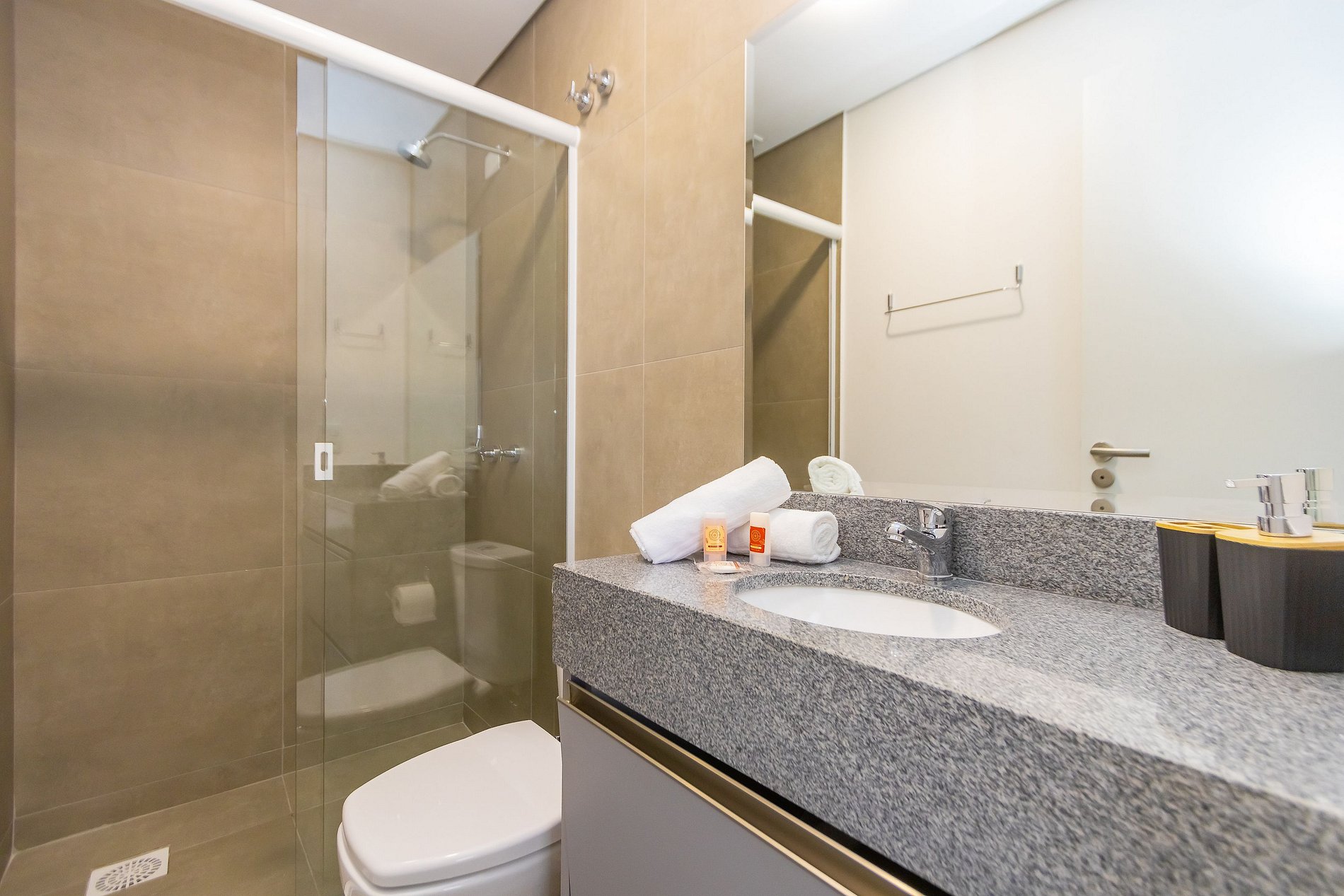 Durante a sua estadia não temos serviço de quarto e nem fazemos a reposição dos itens da sua unidade como: shampoo, condicionador, sabonete, papel higiênico, pano de prato, esponja e detergente de louça, além de pilhas do controle remoto, ar-condicionado e da fechadura eletrônica. A reposição destes itens é de responsabilidade do hóspede titular da reserva.
