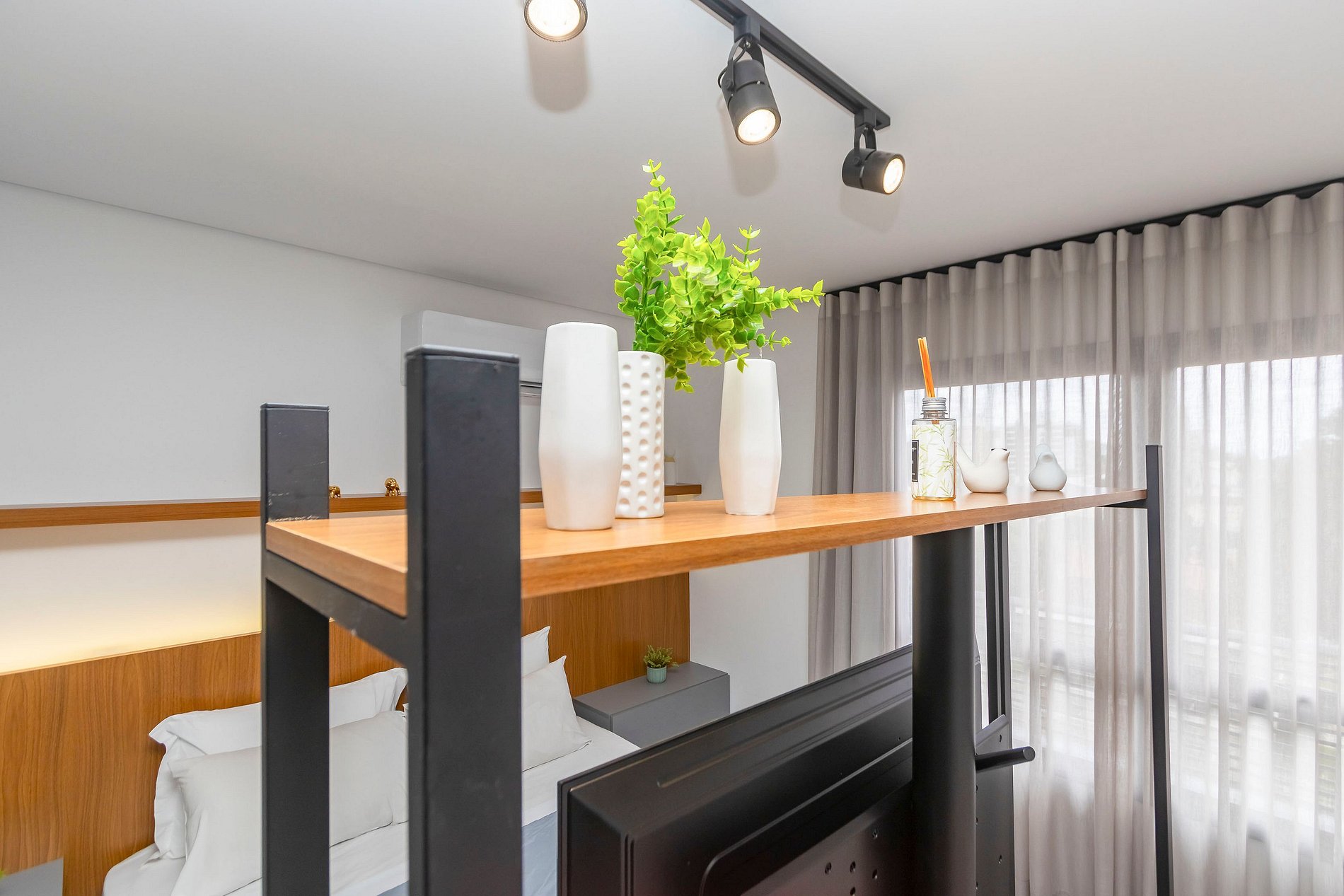 Studio amplo e aconchegante, acomoda até 5 pessoas com conforto. Localizado em uma região tranquila da cidade, ideal para descansar, mas com fácil acesso a qualquer ponto de Curitiba. Perfeito para famílias ou grupos, conta com cozinha equipada, máquina lava e seca e todas as comodidades tudo que você precisa para uma estadia prática e agradável.