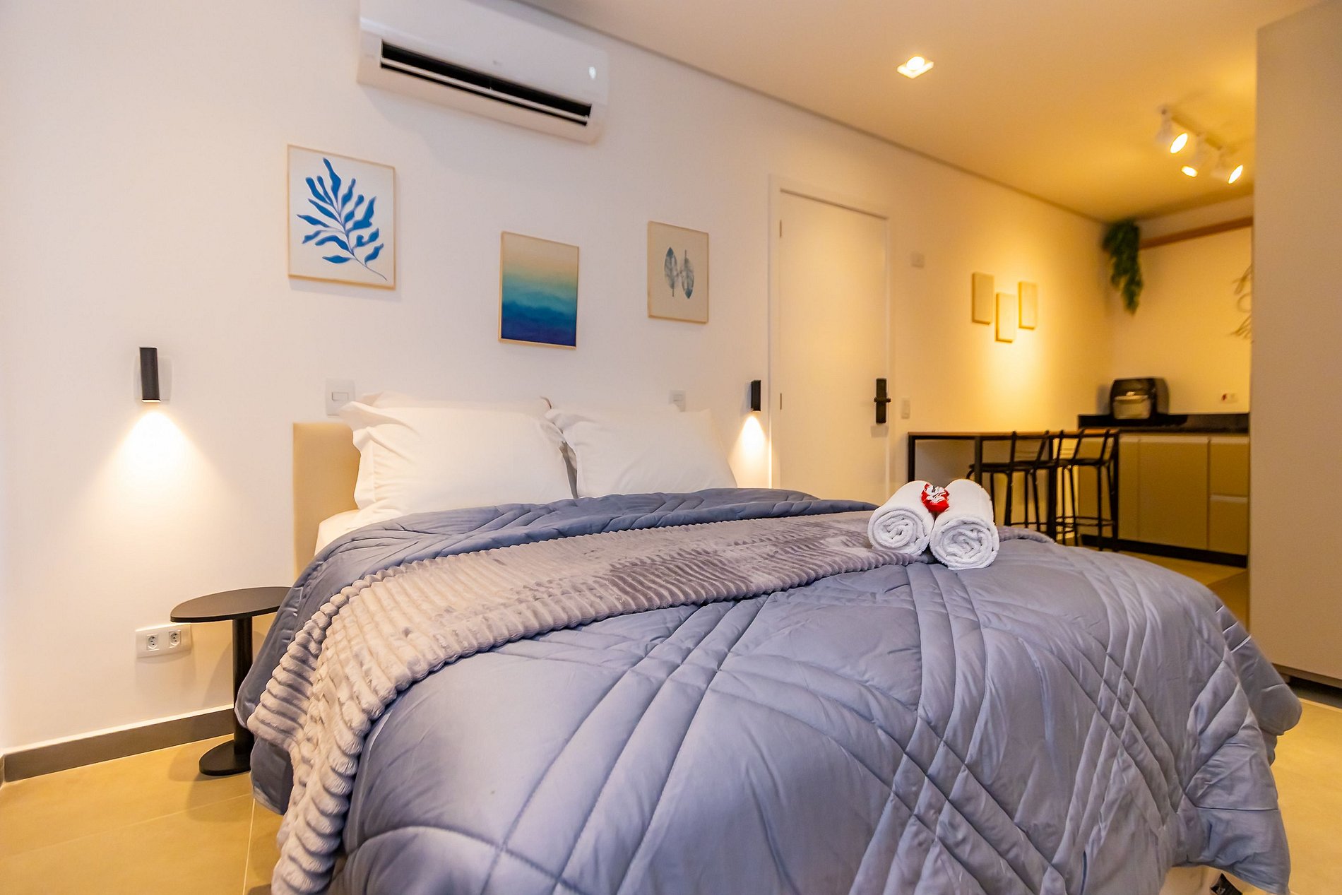 ⌂ Estúdio com Cama de Casal + Cama Auxiliar totalmente mobiliado que oferece as seguintes comodidades aos seus hóspedes: