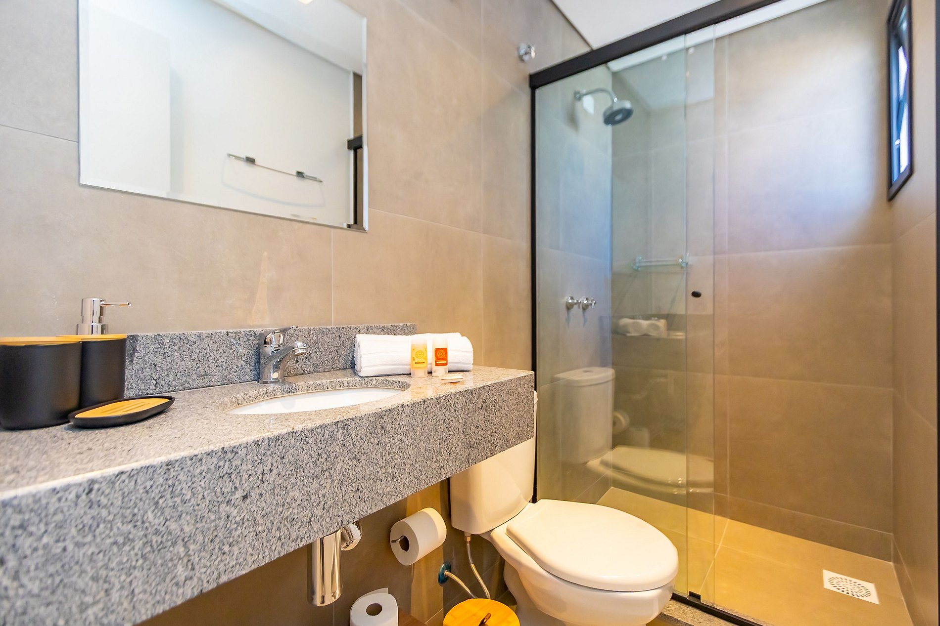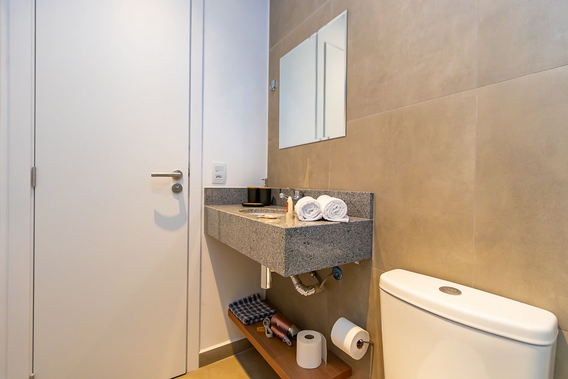 Durante a sua estadia não temos serviço de quarto e nem fazemos a reposição dos itens da sua unidade como: shampoo, condicionador, sabonete, papel higiênico, pano de prato, esponja e detergente de louça, além de pilhas do controle remoto, ar-condicionado e da fechadura eletrônica. A reposição destes itens é de responsabilidade do hóspede titular da reserva.