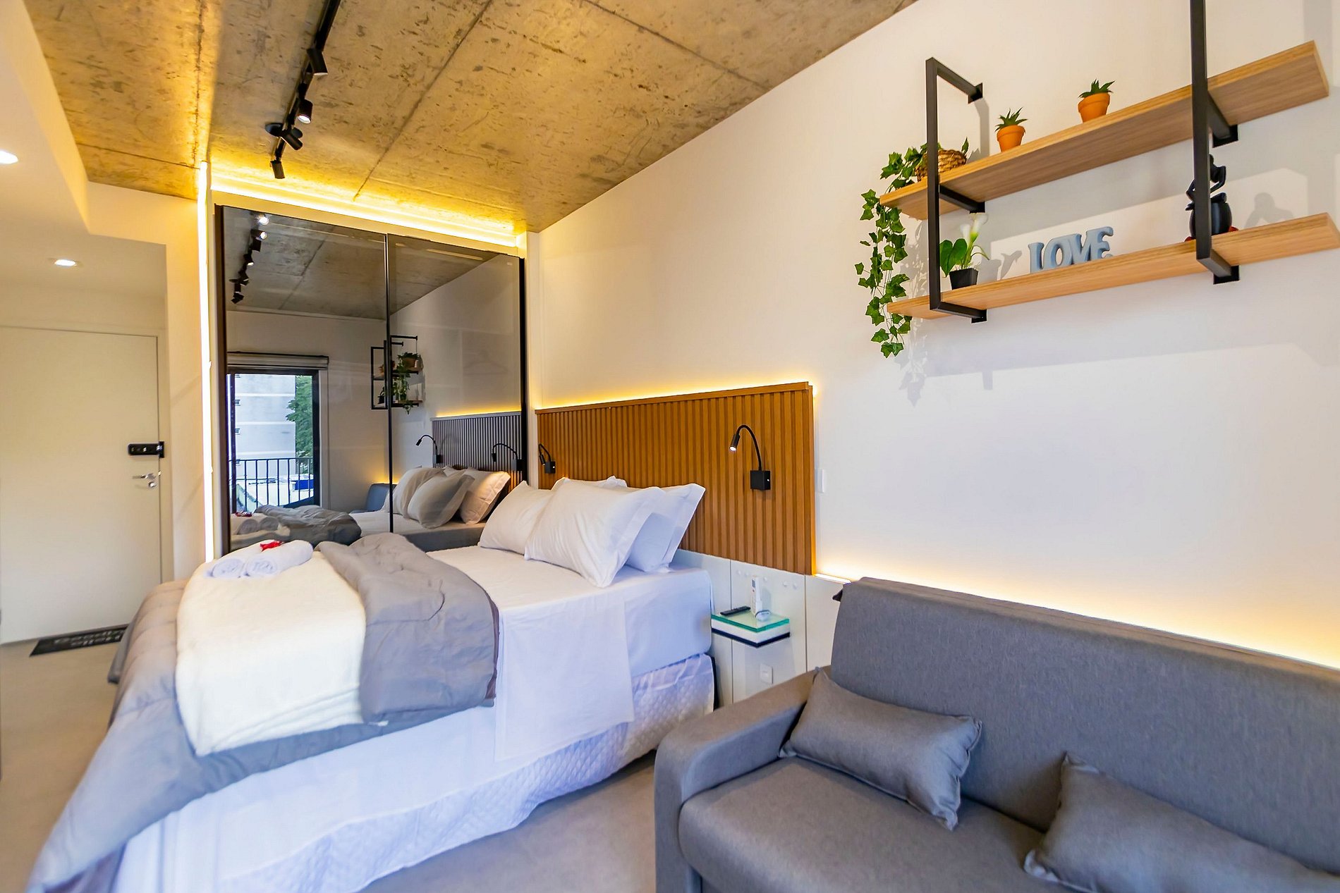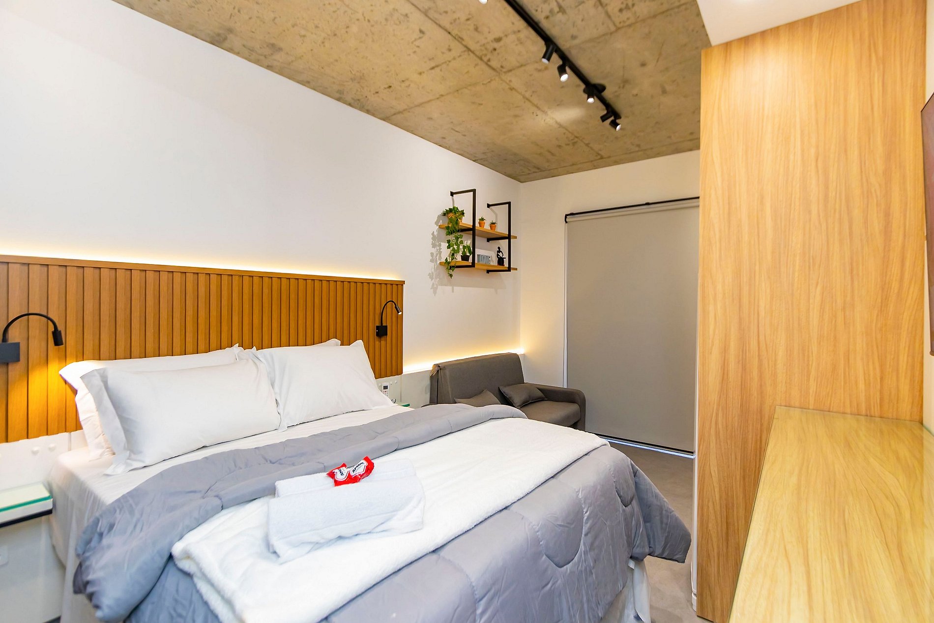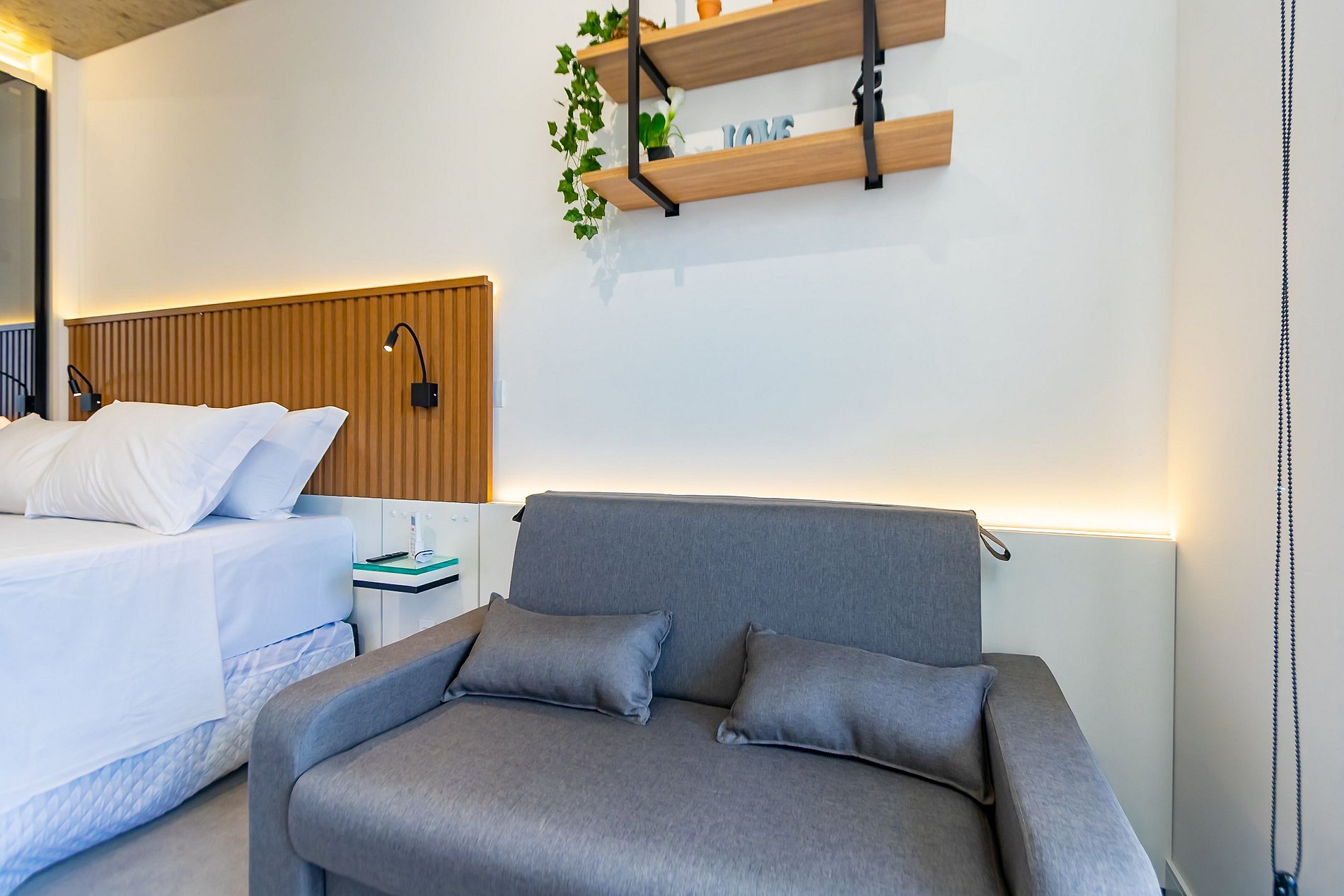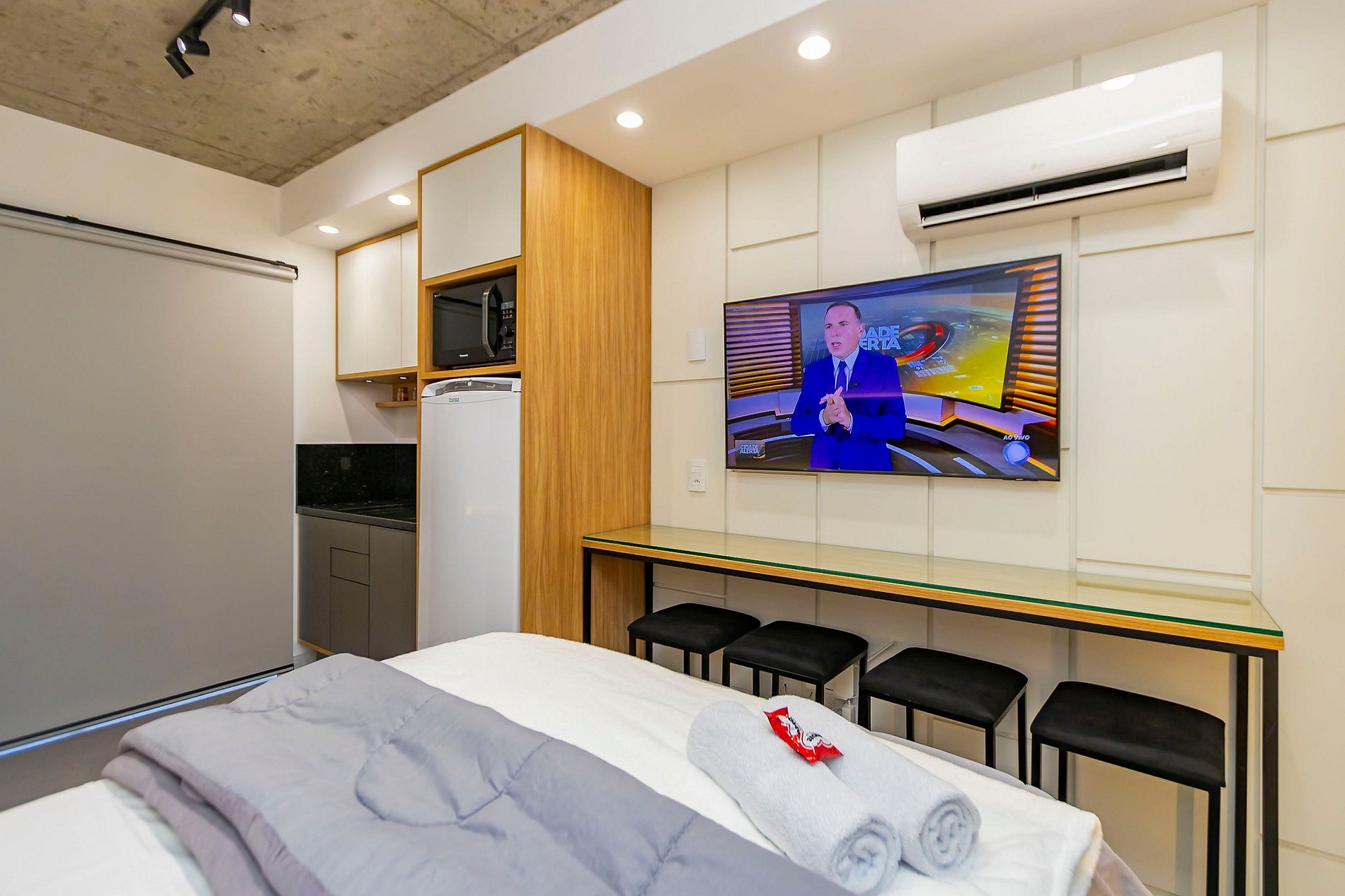 ⌂ Studio totalmente mobiliado que oferece as seguintes comodidades aos seus hóspedes: