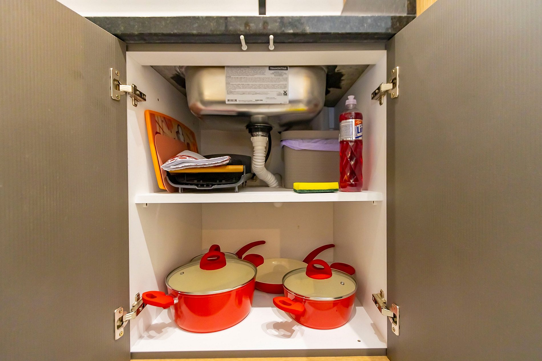 • Dentro da lavanderia localizada no térreo há lixeiras para realizar o descarte.