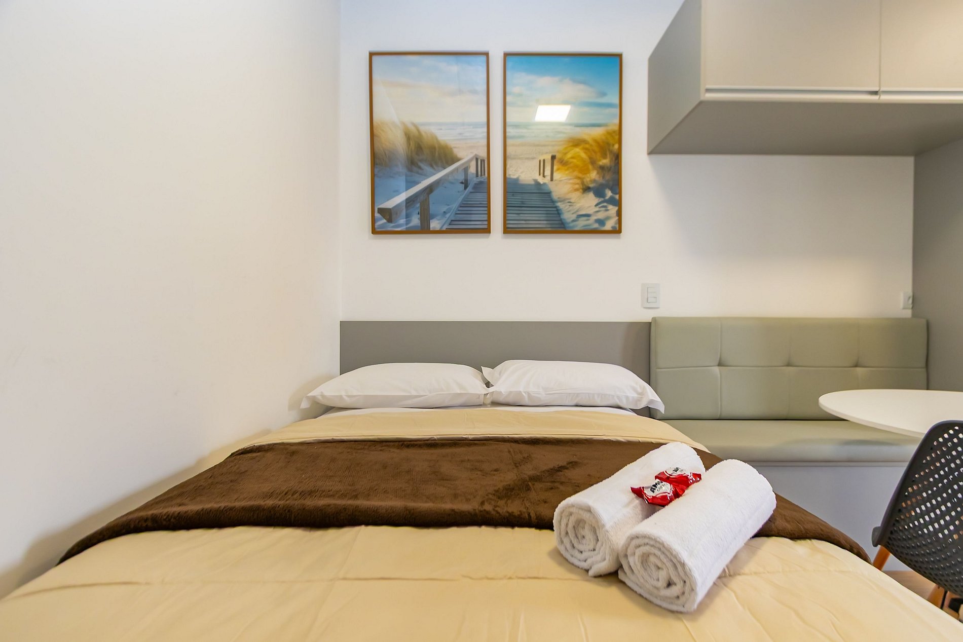 ⌂ Studio totalmente mobiliado que oferece as seguintes comodidades aos seus hóspedes: