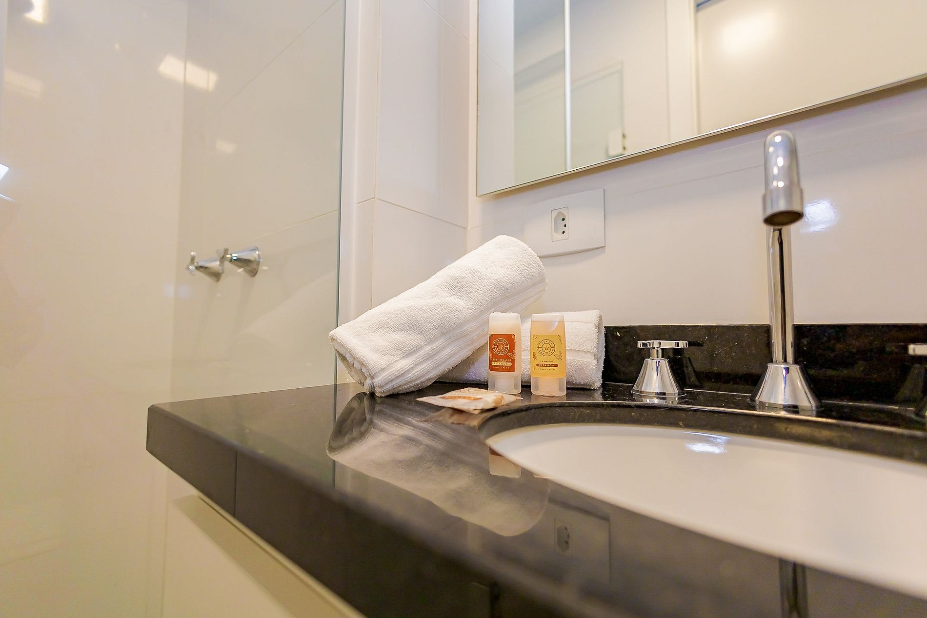 Durante a sua estadia não temos serviço de quarto e nem fazemos a reposição dos itens da sua unidade como: shampoo, condicionador, sabonete, papel higiênico, pano de prato, esponja e detergente de louça, além de pilhas do controle remoto, ar-condicionado e da fechadura eletrônica. A reposição destes itens é de responsabilidade do hóspede titular da reserva.