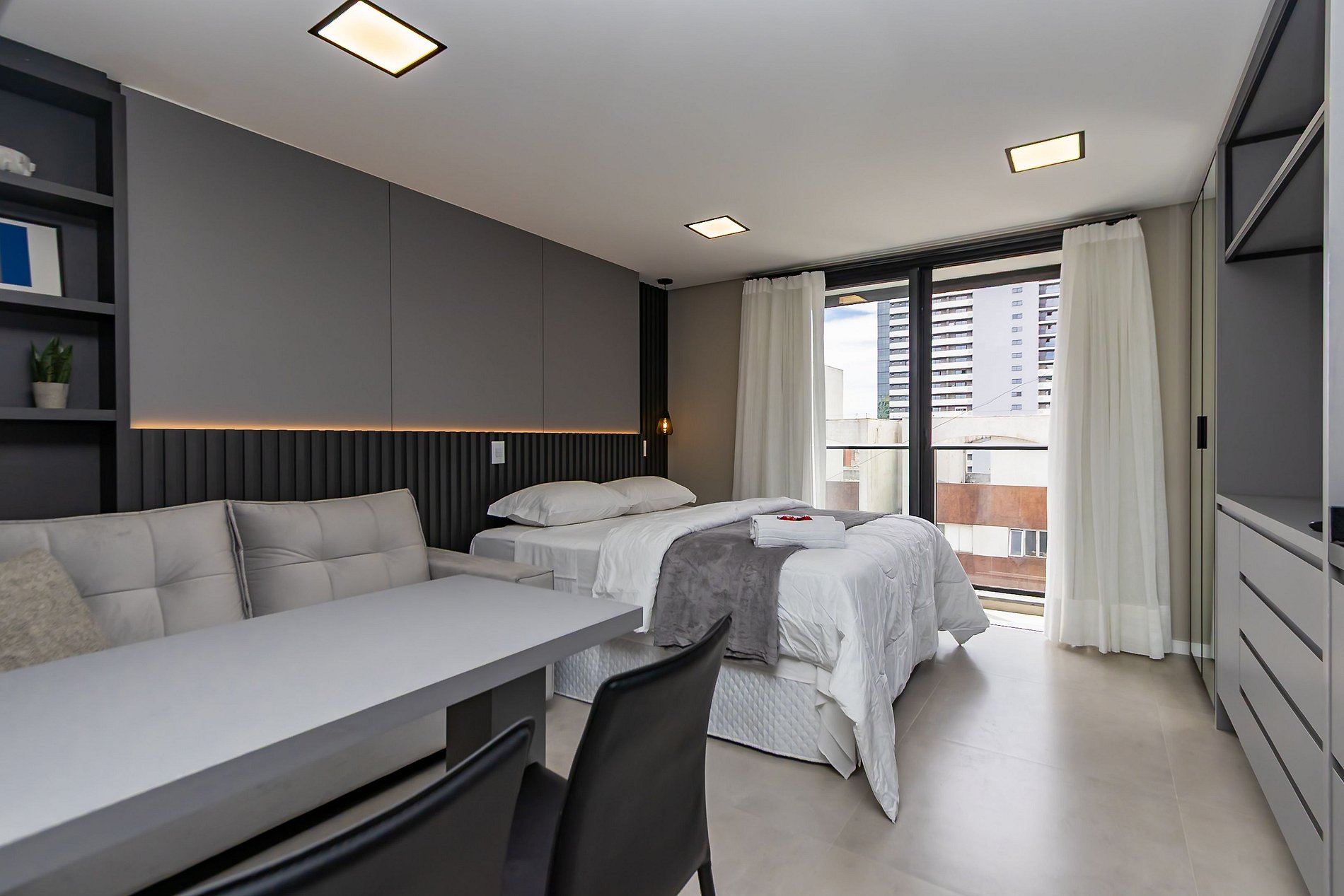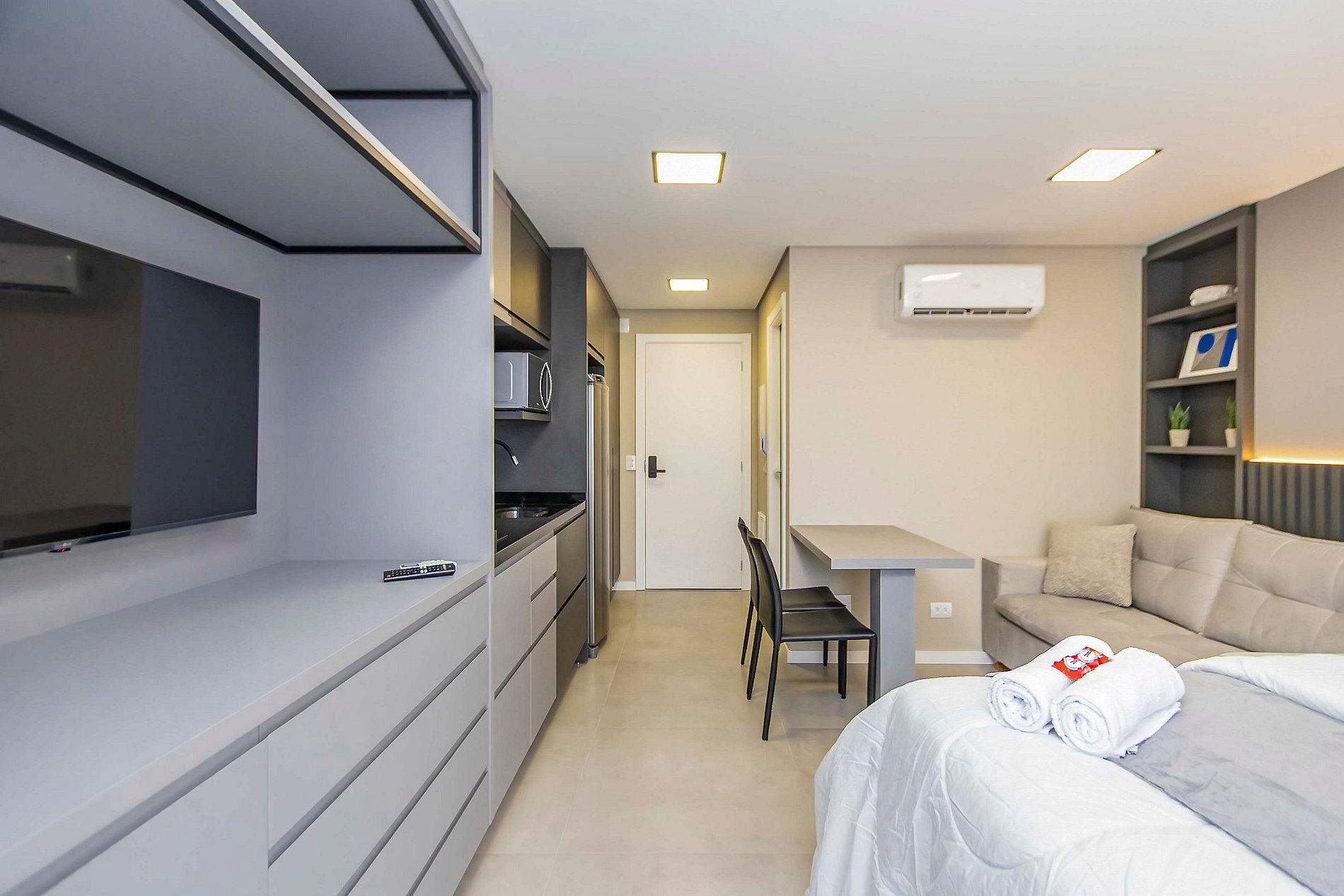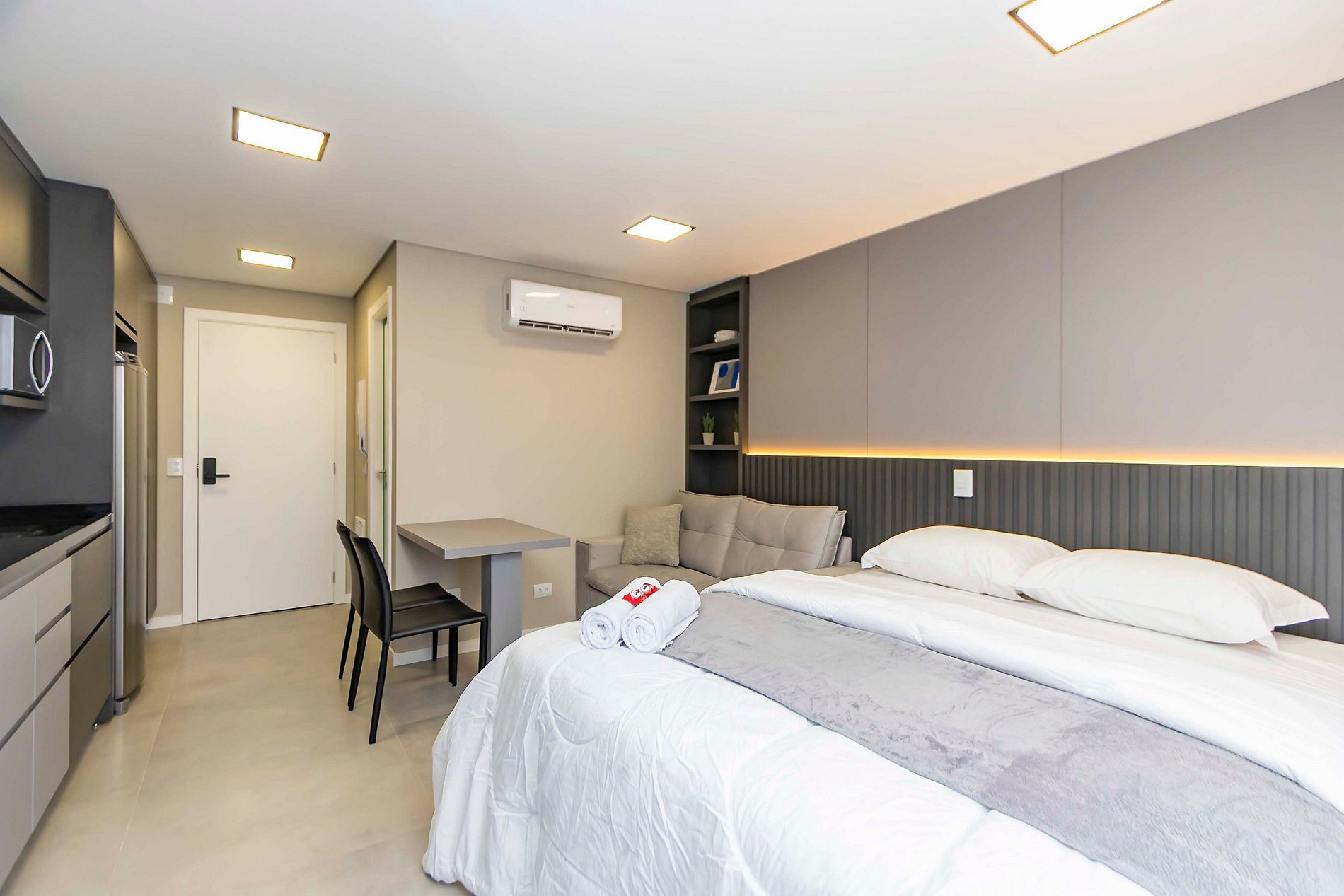 ⌂ Studio totalmente mobiliado que oferece as seguintes comodidades aos seus hóspedes: