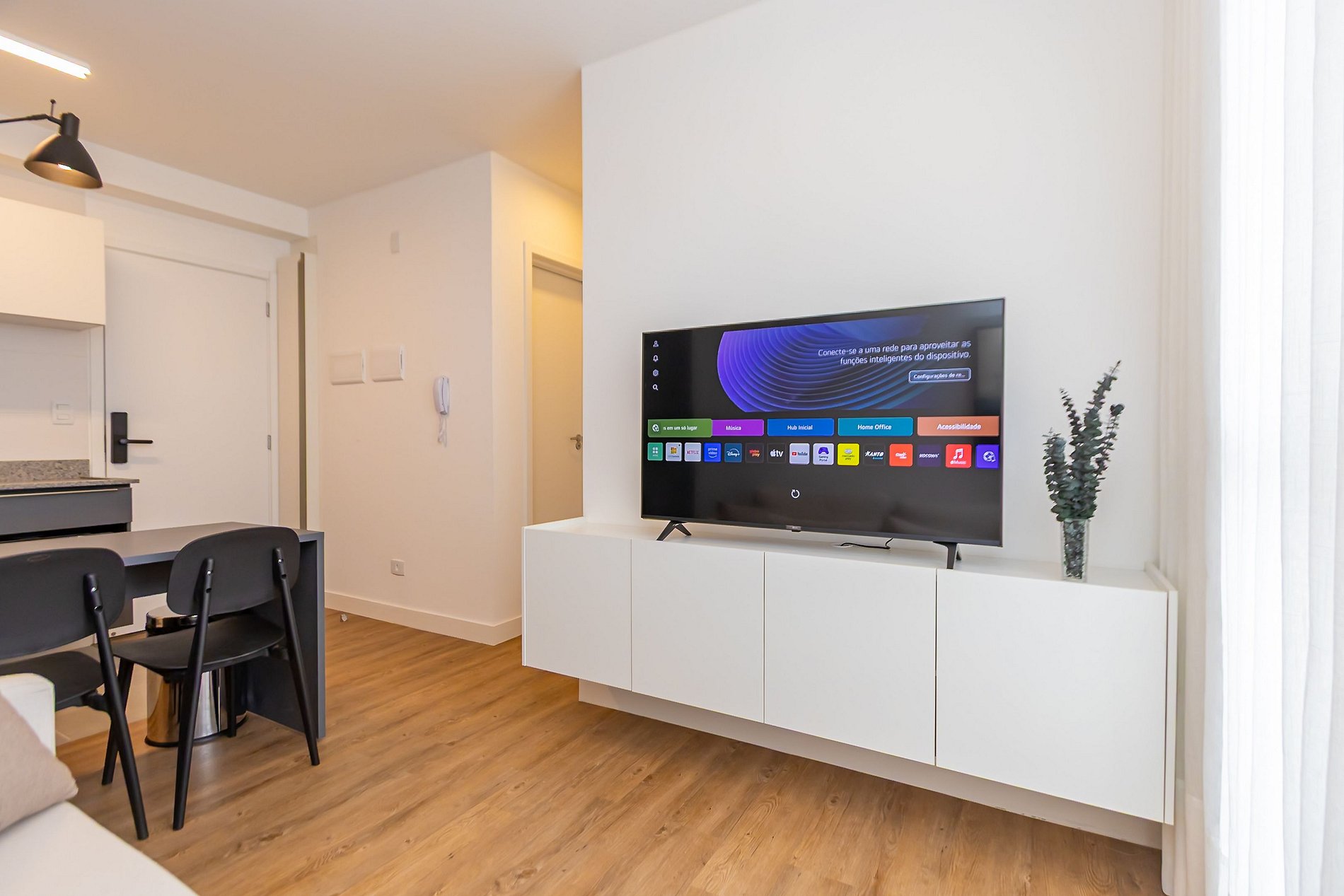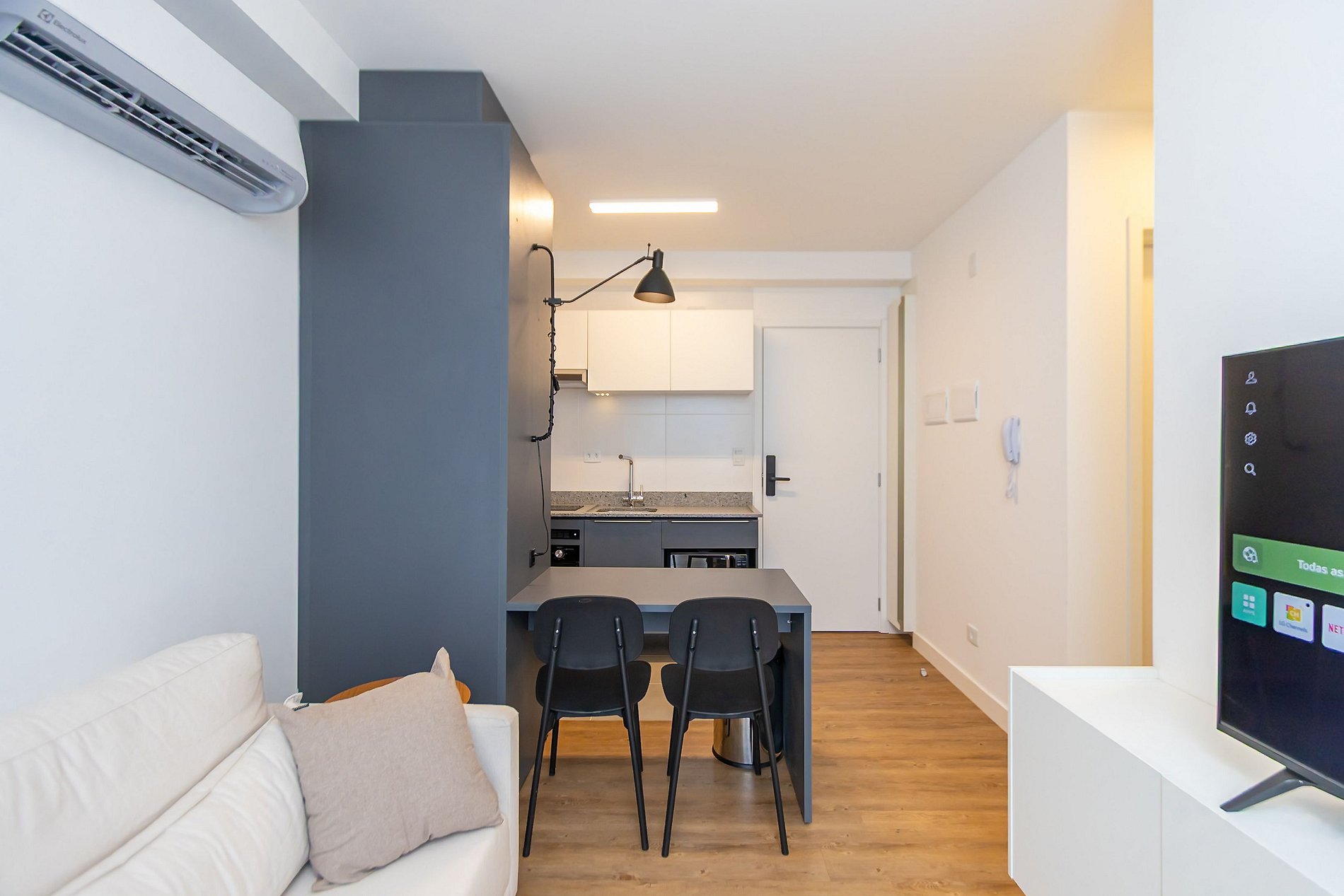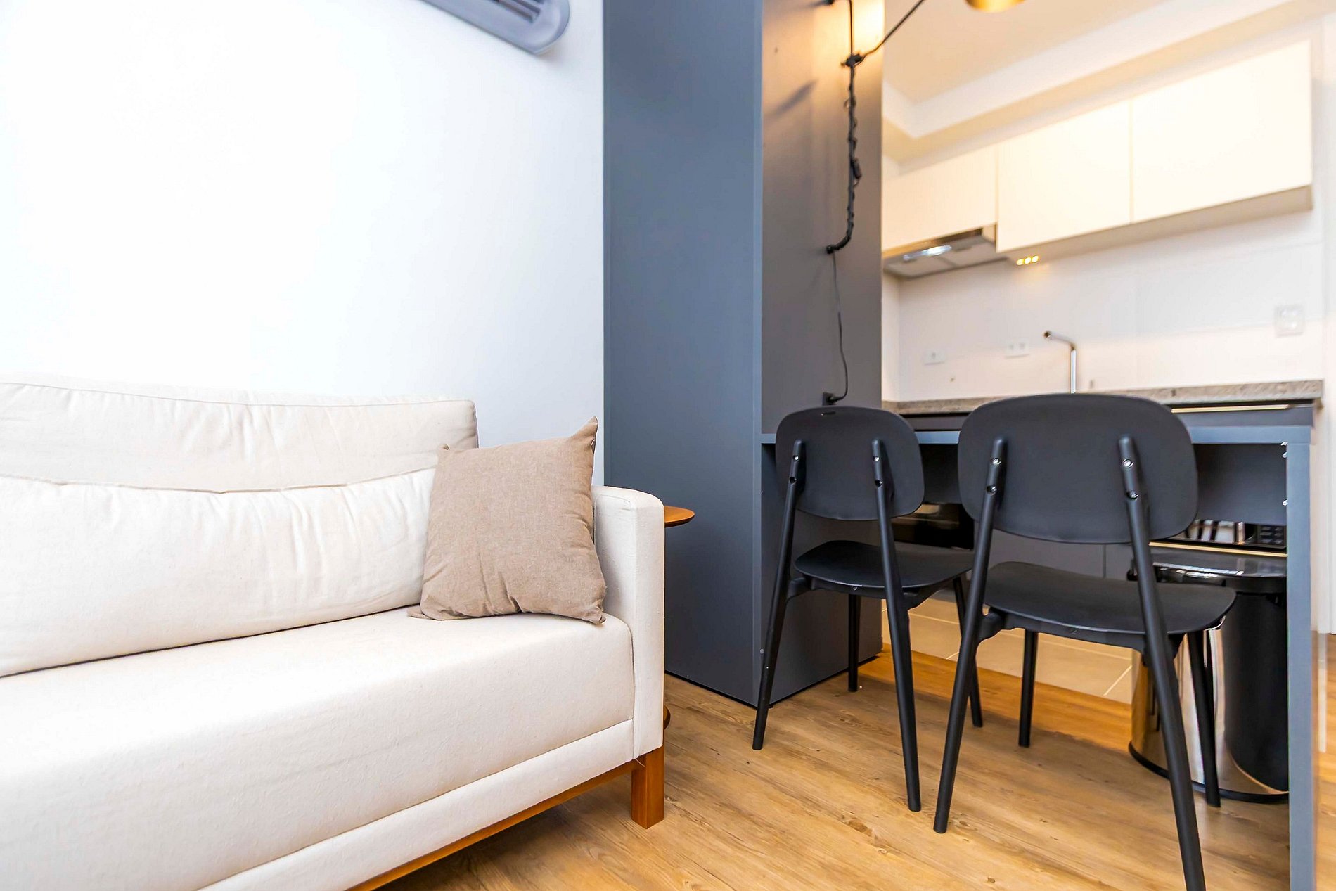 Apartamento de 2 quartos, elegante e completo, ideal para até 3 pessoas. Com ar-condicionado, decoração moderna e ambientes planejados para garantir conforto e praticidade. Cozinha totalmente equipada, Wi-Fi de qualidade e vaga de garagem inclusa. Situado em condomínio com piscina, ideal para relaxar. Localizado no coração da cidade, com fácil acesso a restaurantes, lojas, cafés e serviços. Sofisticação, conveniência e bem-estar em cada detalhe.
