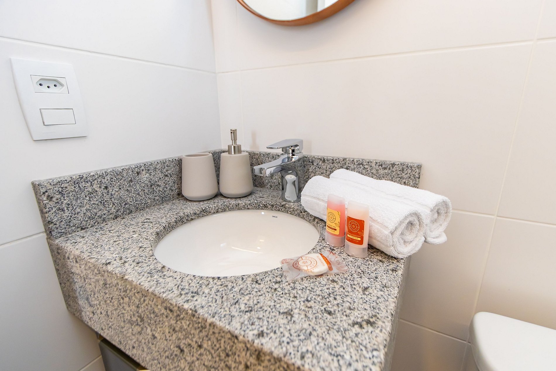 Durante a sua estadia não temos serviço de quarto e nem fazemos a reposição dos itens da sua unidade como: shampoo, condicionador, sabonete, papel higiênico, pano de prato, esponja e detergente de louça, além de pilhas do controle remoto, ar-condicionado e da fechadura eletrônica. A reposição destes itens é de responsabilidade do hóspede titular da reserva.