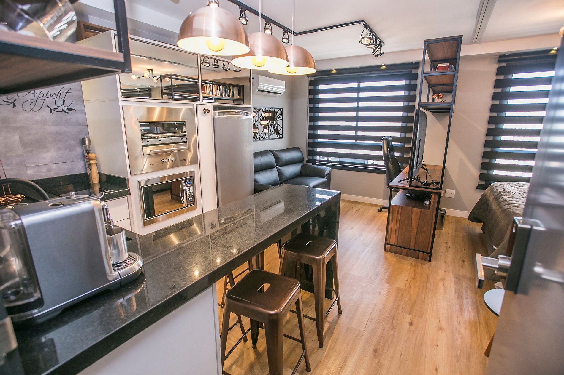 ⌂ Estúdio totalmente mobiliado que oferece as seguintes comodidades aos seus hospedes: