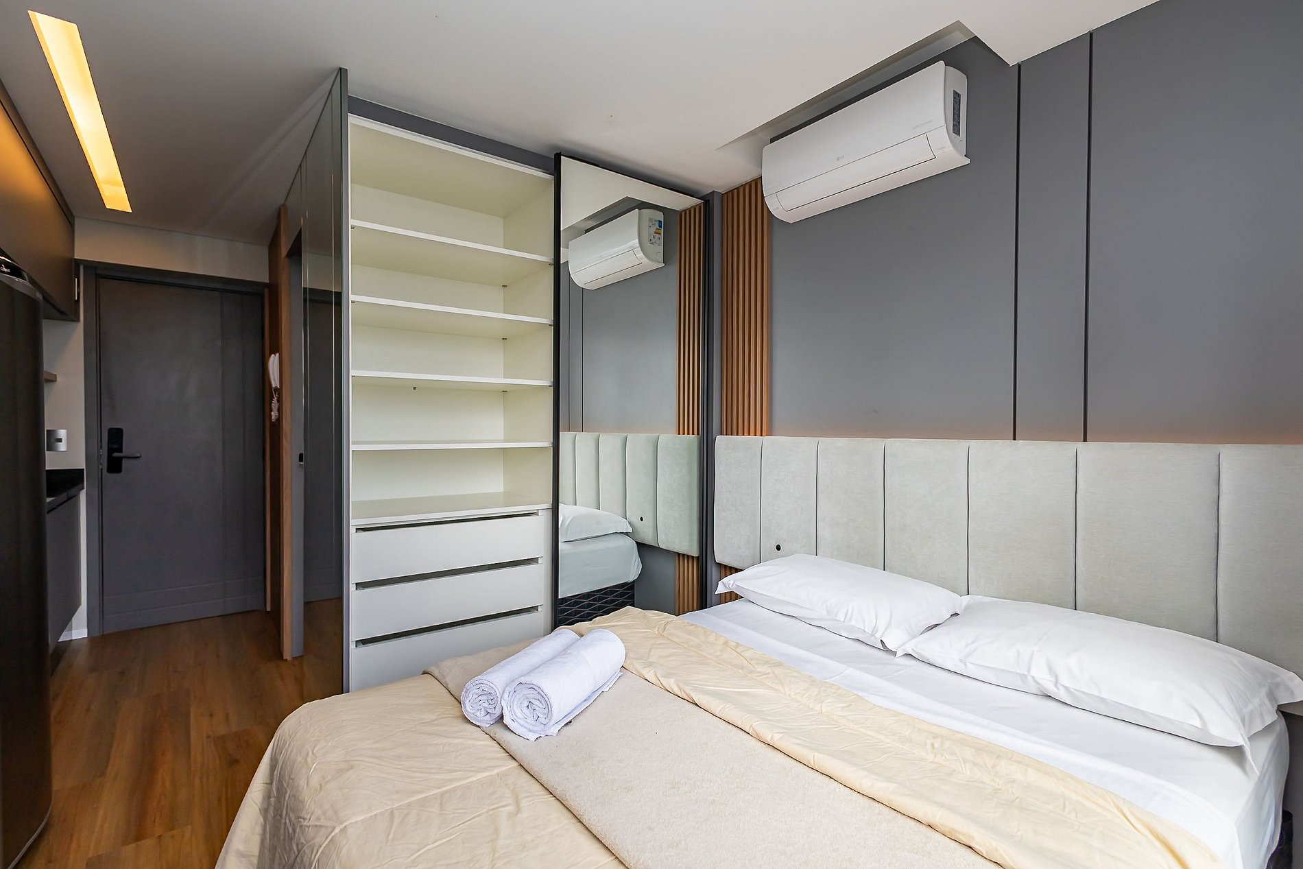 • Se houver outra reserva com entrada na mesma data de saída, este hóspede que já possui reserva terá o direito de fazer o check-in à partir das 14 horas, neste caso o hospede atual deverá confirmar a saída até as 11 horas para que a equipe de limpeza tenha tempo de limpar e higienizar o apartamento antes de liberar o acesso ao hóspede que está chegando;