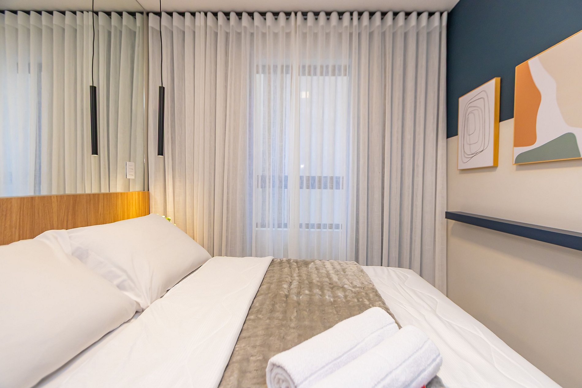 Apartamento novo, completo e muito confortável, ideal para até 4 pessoas. Ambientes bem decorados, funcionais e equipados para garantir uma estadia prática e aconchegante. Perfeito para famílias, casais ou grupos pequenos. Localizado em um prédio moderno, com fácil acesso às principais vias, transporte, comércios e restaurantes. Uma ótima escolha para quem valoriza conforto, praticidade e uma localização estratégica na cidade.