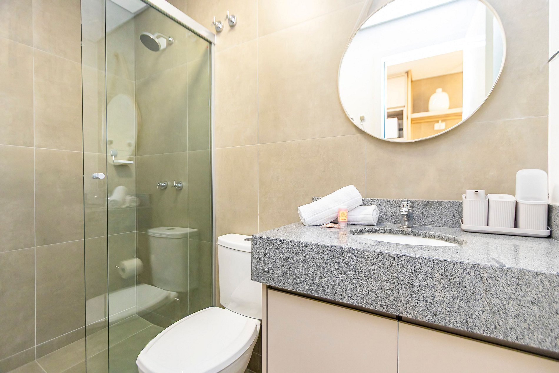 Durante a sua estadia não temos serviço de quarto e nem fazemos a reposição dos itens da sua unidade como: shampoo, condicionador, sabonete, papel higiênico, pano de prato, esponja e detergente de louça, além de pilhas do controle remoto, ar-condicionado e da fechadura eletrônica. A reposição destes itens é de responsabilidade do hóspede titular da reserva.