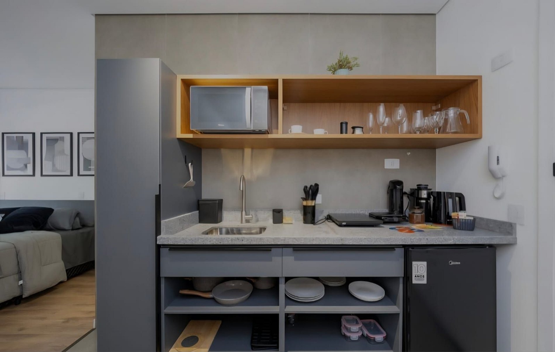 ⌂ Estúdio Garden totalmente mobiliado que oferece as seguintes comodidades aos seus hóspedes: