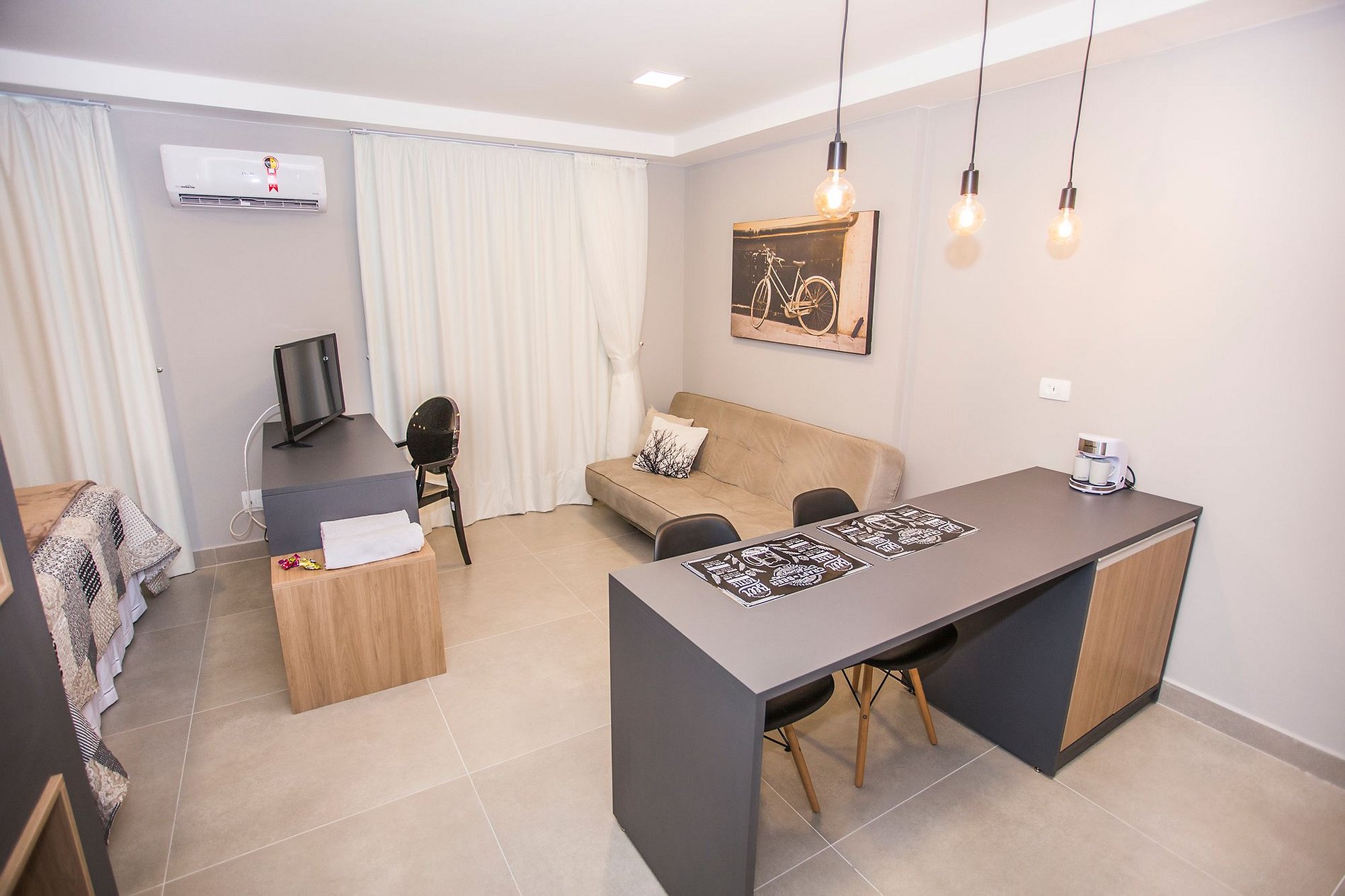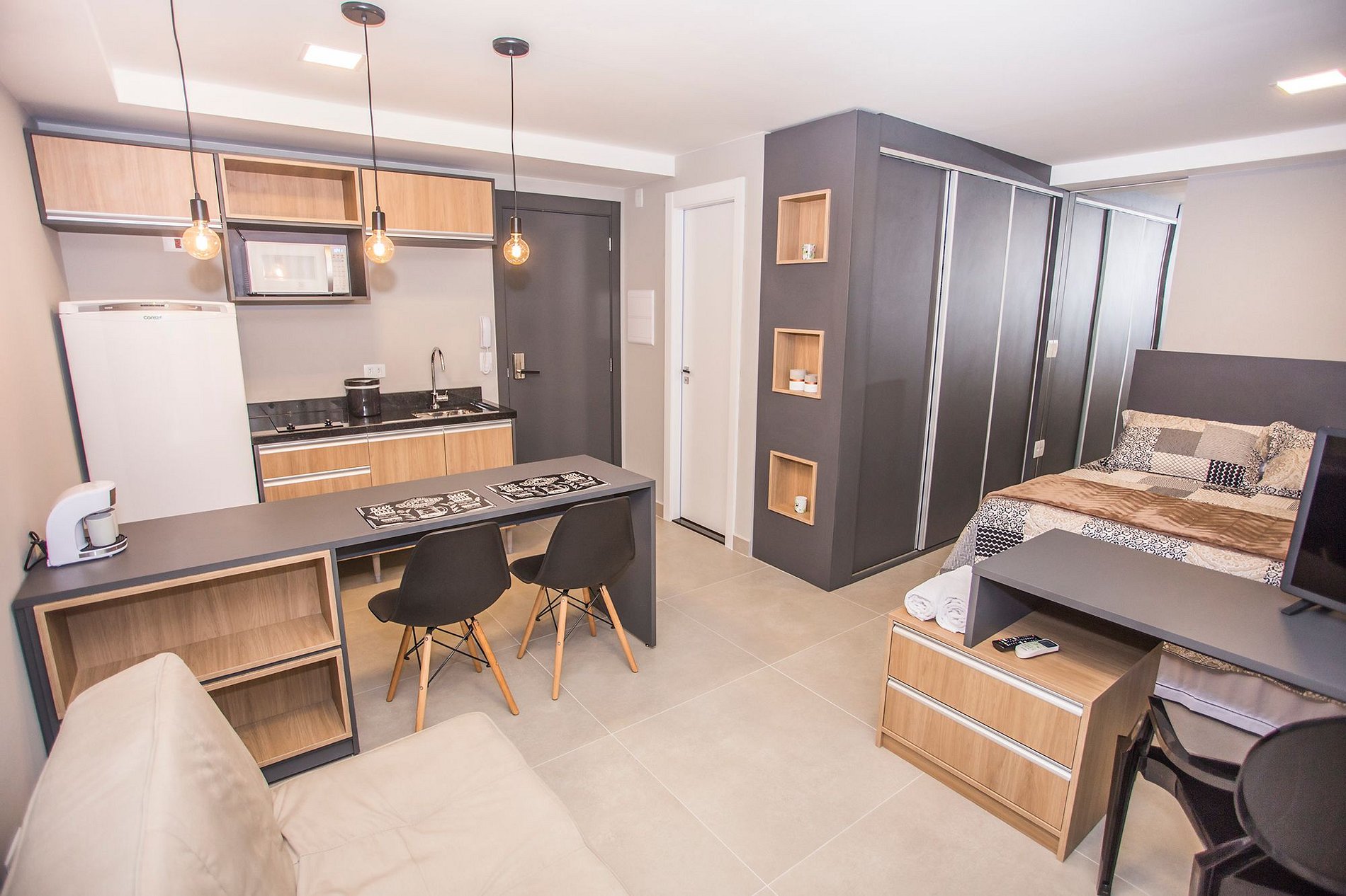 ⌂ Estúdio totalmente mobiliado que oferece as seguintes comodidades aos seus hospedes: