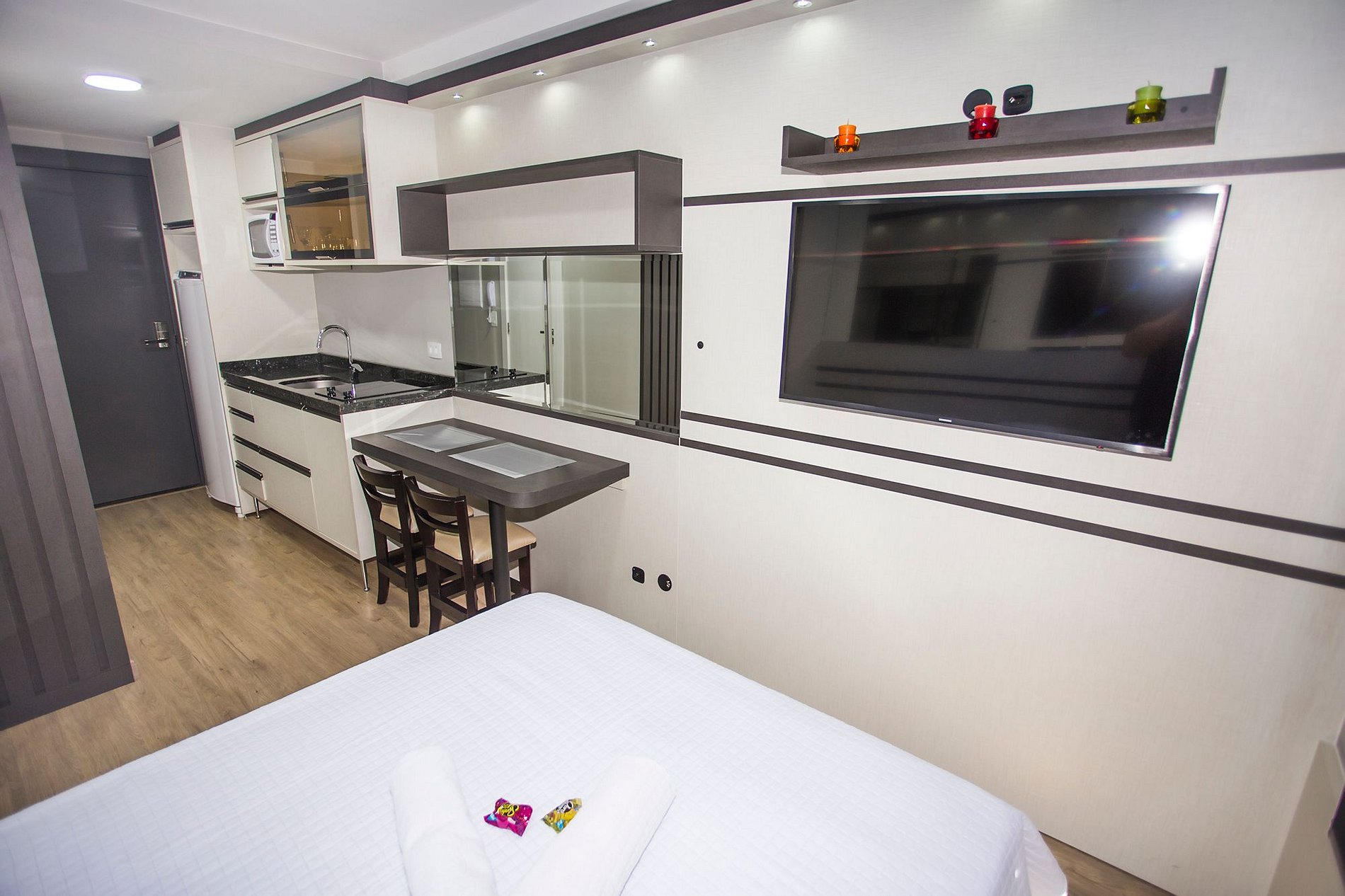 ⌂ Estúdio totalmente mobiliado que oferece as seguintes comodidades aos seus hospedes:
