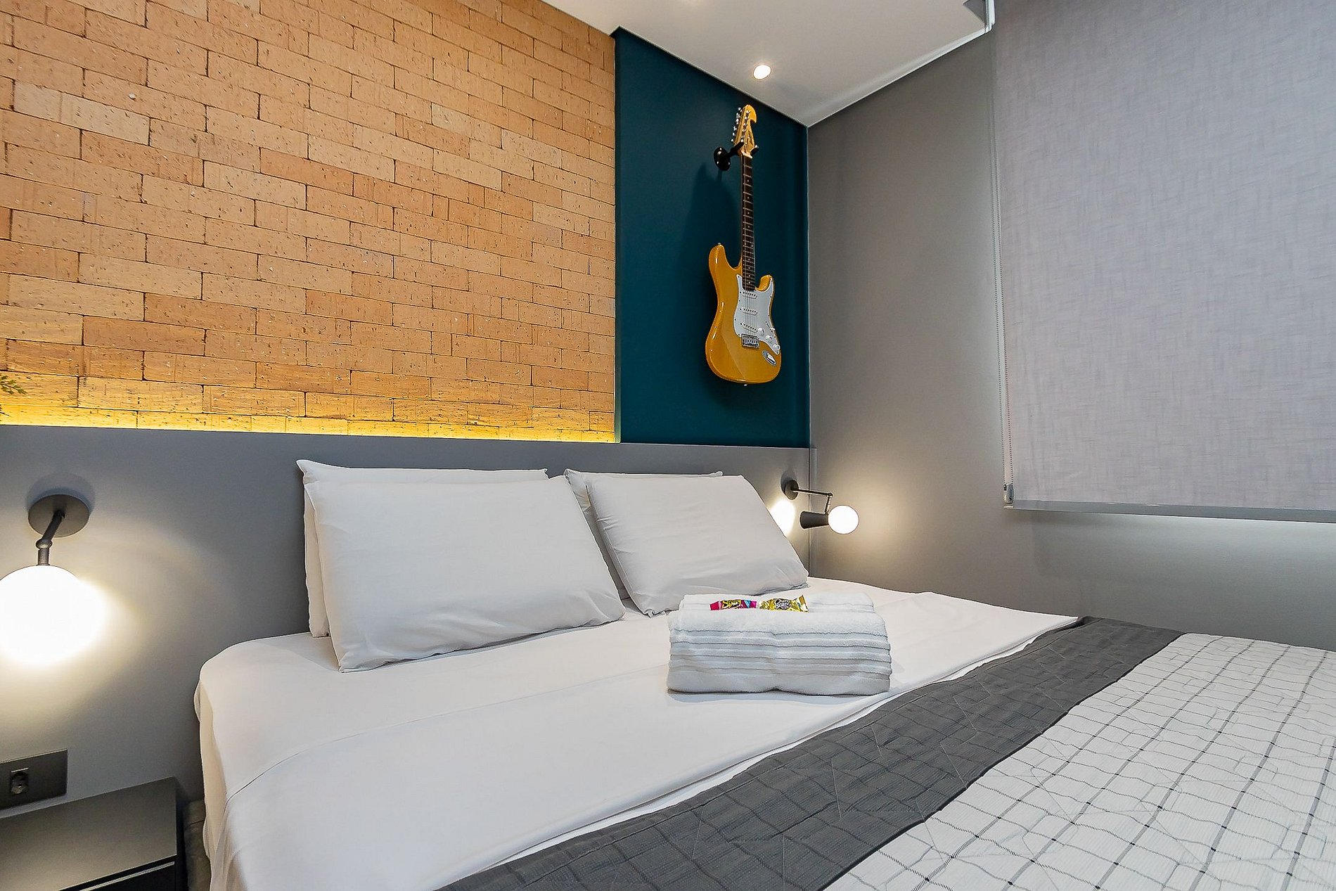 • Guitarra Elétrica 1970 com pantone do apartamento, cor de amarelo que adquiriu a cor necessária para combinar com o Studio após mais de 40 anos.
