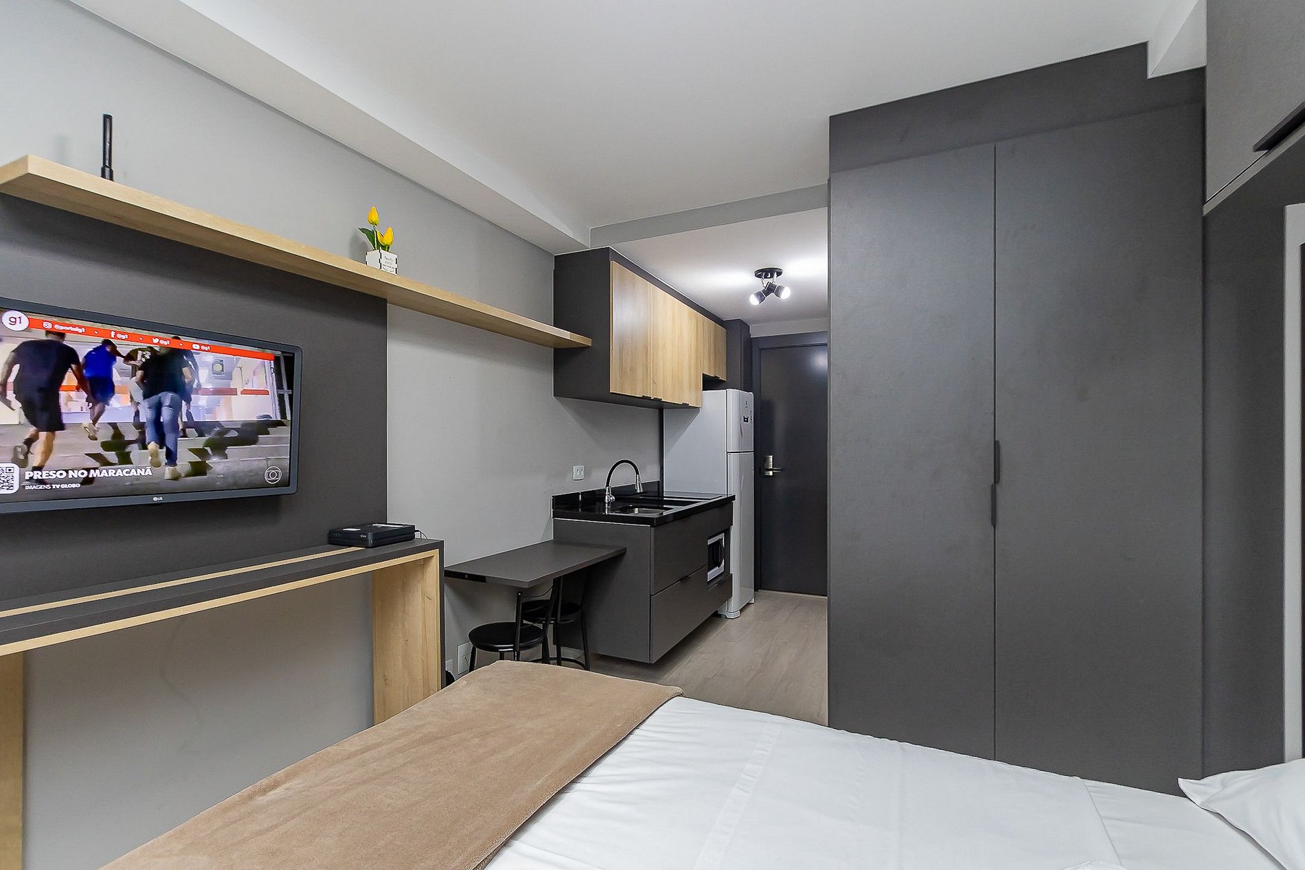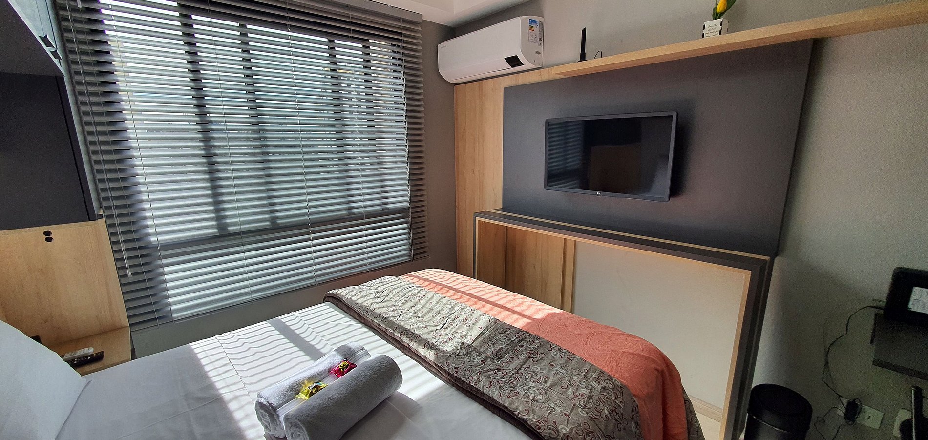⌂ Estúdio totalmente mobiliado que oferece as seguintes comodidades aos seus hospedes: