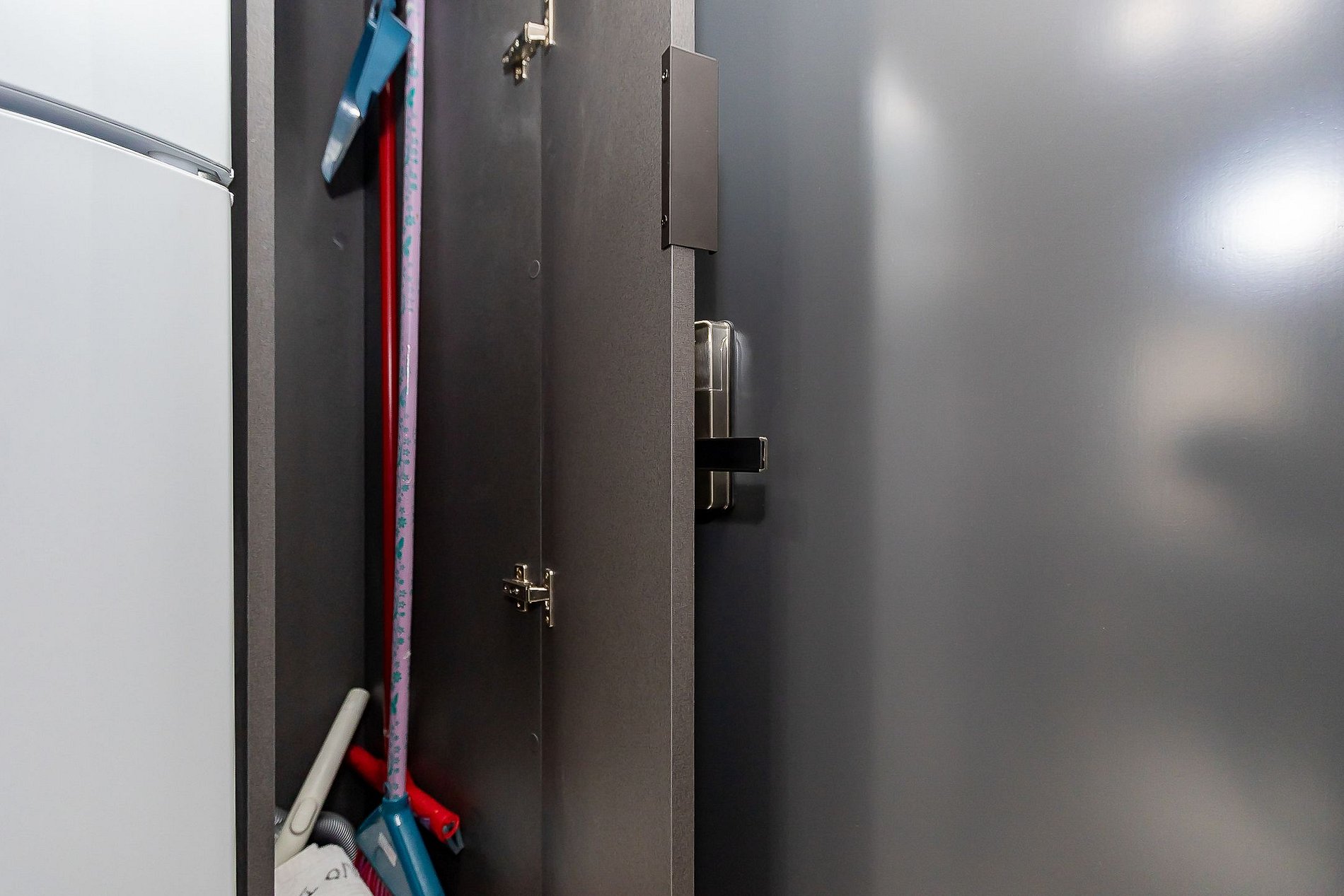 • O apartamento possui fechadura eletrônica, para aparecer o teclado numérico encoste a mão na fechadura, digite a senha e aperte o botão do cadeado aberto;