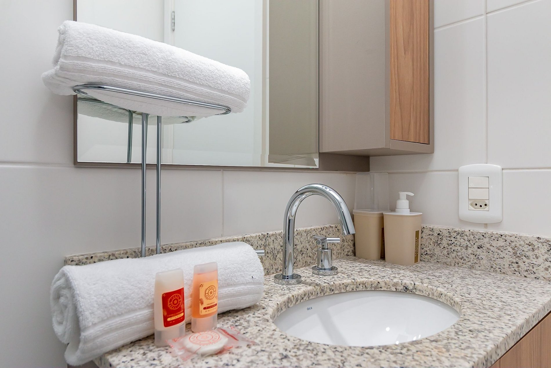 Durante a sua estadia não temos serviço de quarto e nem fazemos a reposição dos itens da sua unidade como: shampoo, condicionador, sabonete, papel higiênico, pano de prato, esponja e detergente de louça, além de pilhas do controle remoto, ar-condicionado e da fechadura eletrônica. A reposição destes itens é de responsabilidade do hóspede titular da reserva.