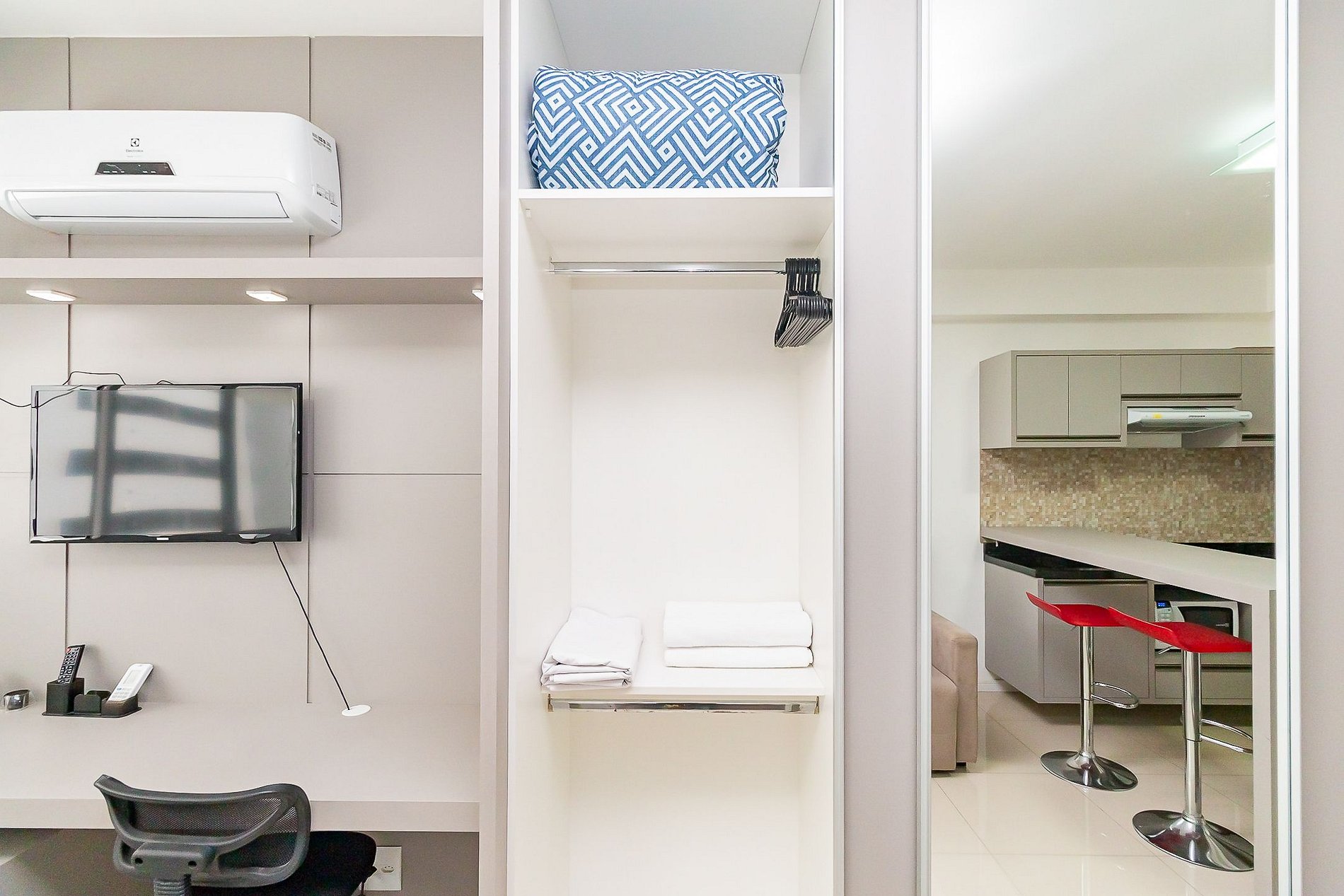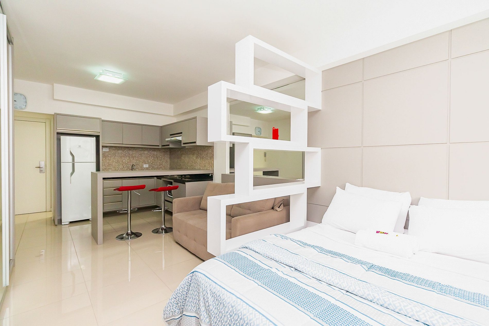 ⌂ Estúdio totalmente mobiliado que oferece as seguintes comodidades aos seus hóspedes:
