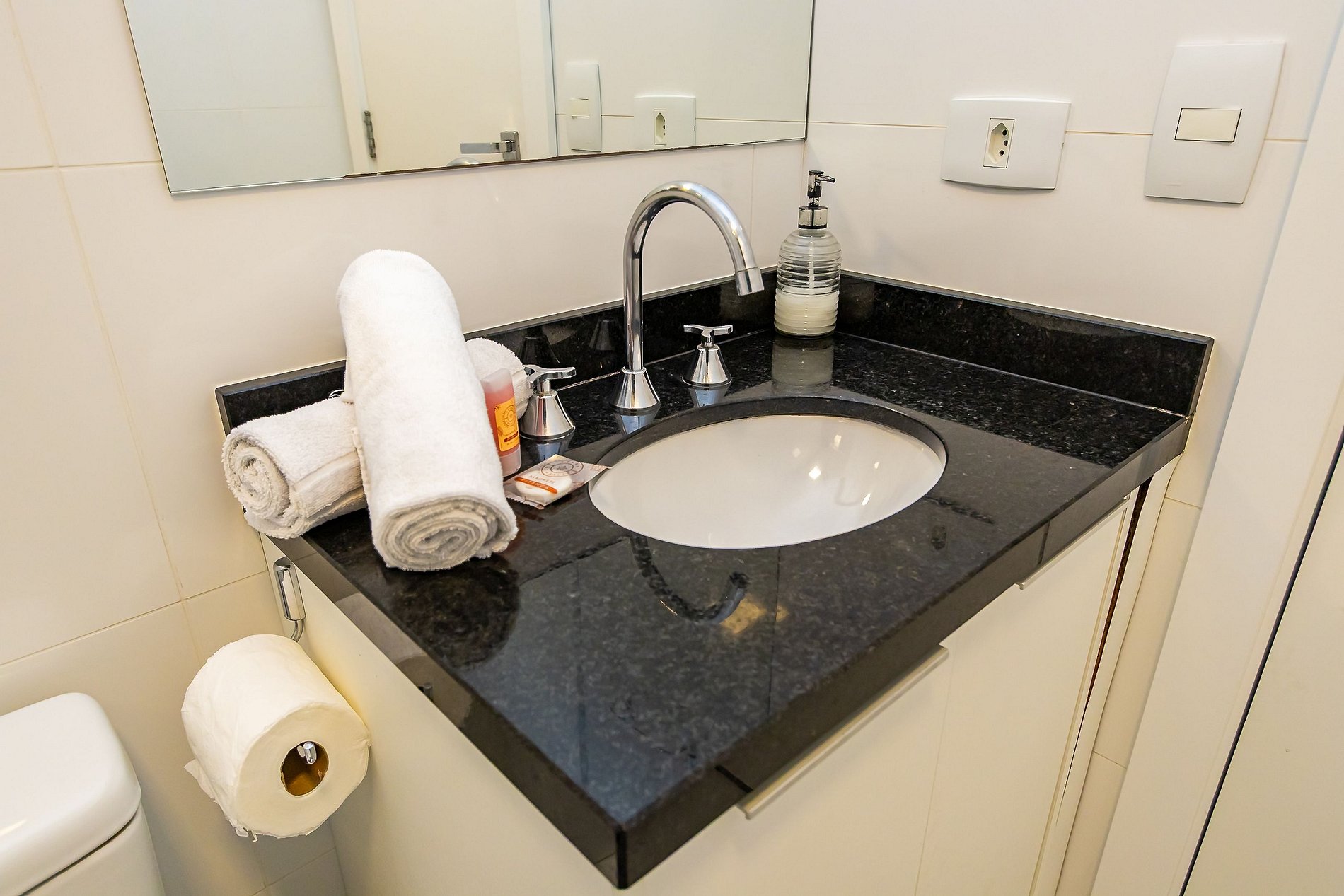 Durante a sua estadia não temos serviço de quarto e nem fazemos a reposição dos itens da sua unidade como: shampoo, condicionador, sabonete, papel higiênico, pano de prato, esponja e detergente de louça, além de pilhas do controle remoto, ar-condicionado e da fechadura eletrônica. A reposição destes itens é de responsabilidade do hóspede titular da reserva.