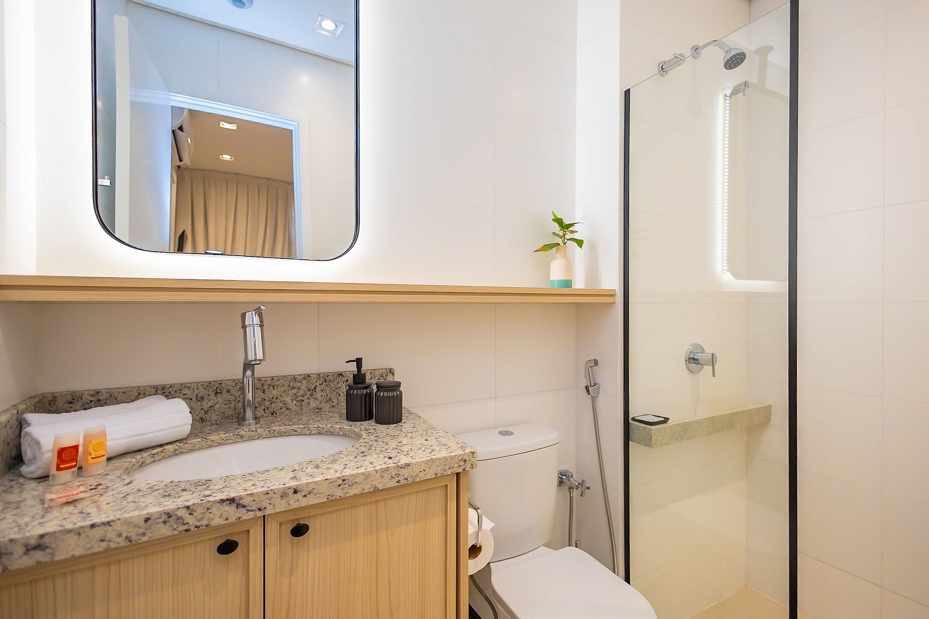 Durante a sua estadia não temos serviço de quarto e nem fazemos a reposição dos itens da sua unidade como: shampoo, condicionador, sabonete, papel higiênico, pano de prato, esponja e detergente de louça, além de pilhas do controle remoto, ar-condicionado e da fechadura eletrônica. A reposição destes itens é de responsabilidade do hóspede titular da reserva.