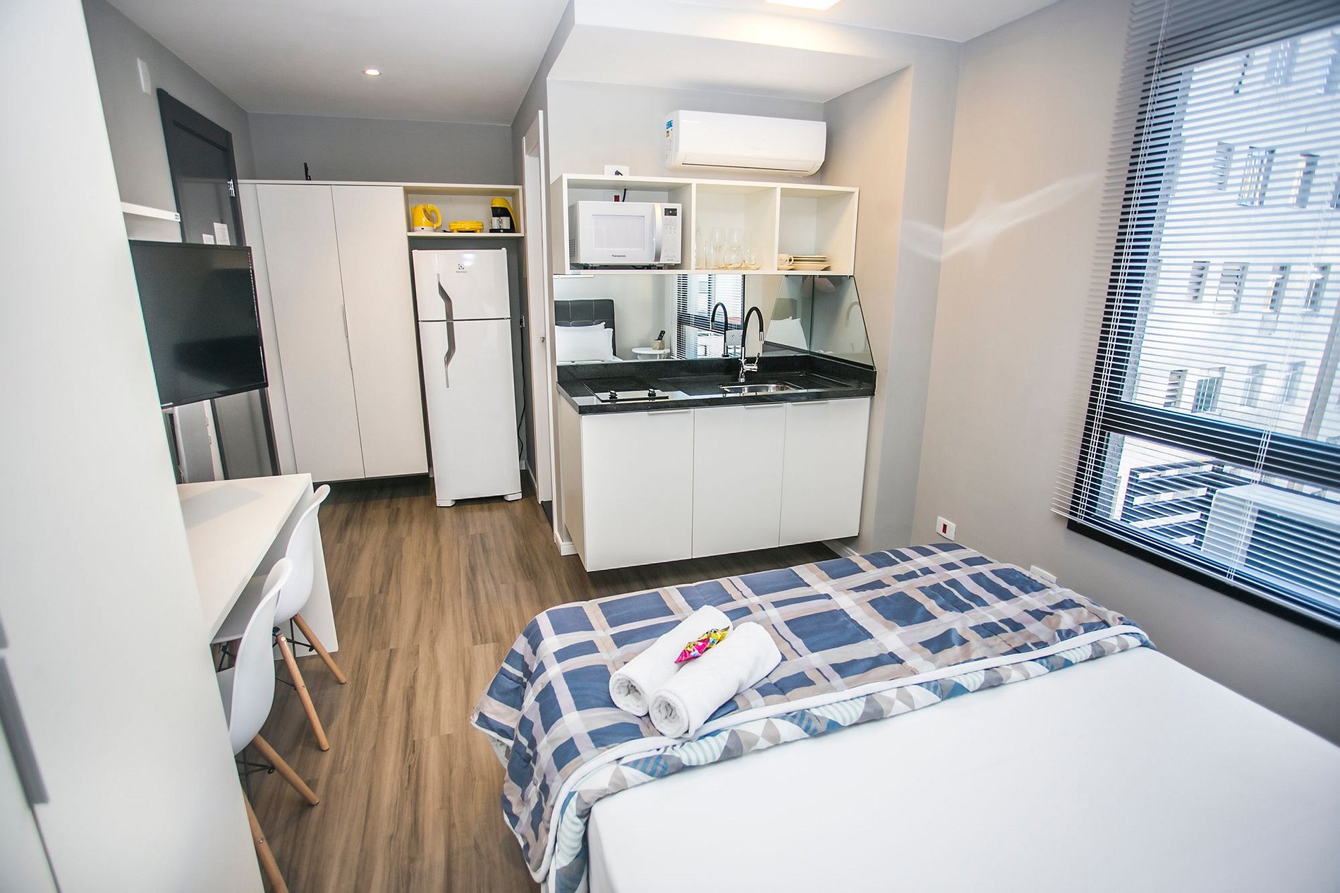 ⌂ Estúdio totalmente mobiliado que oferece as seguintes comodidades aos seus hospedes: