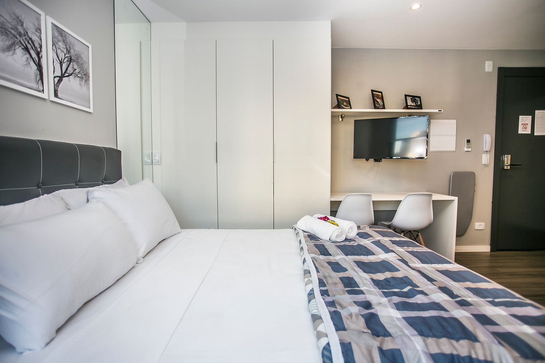 ⌂ Estúdio totalmente mobiliado que oferece as seguintes comodidades aos seus hospedes: