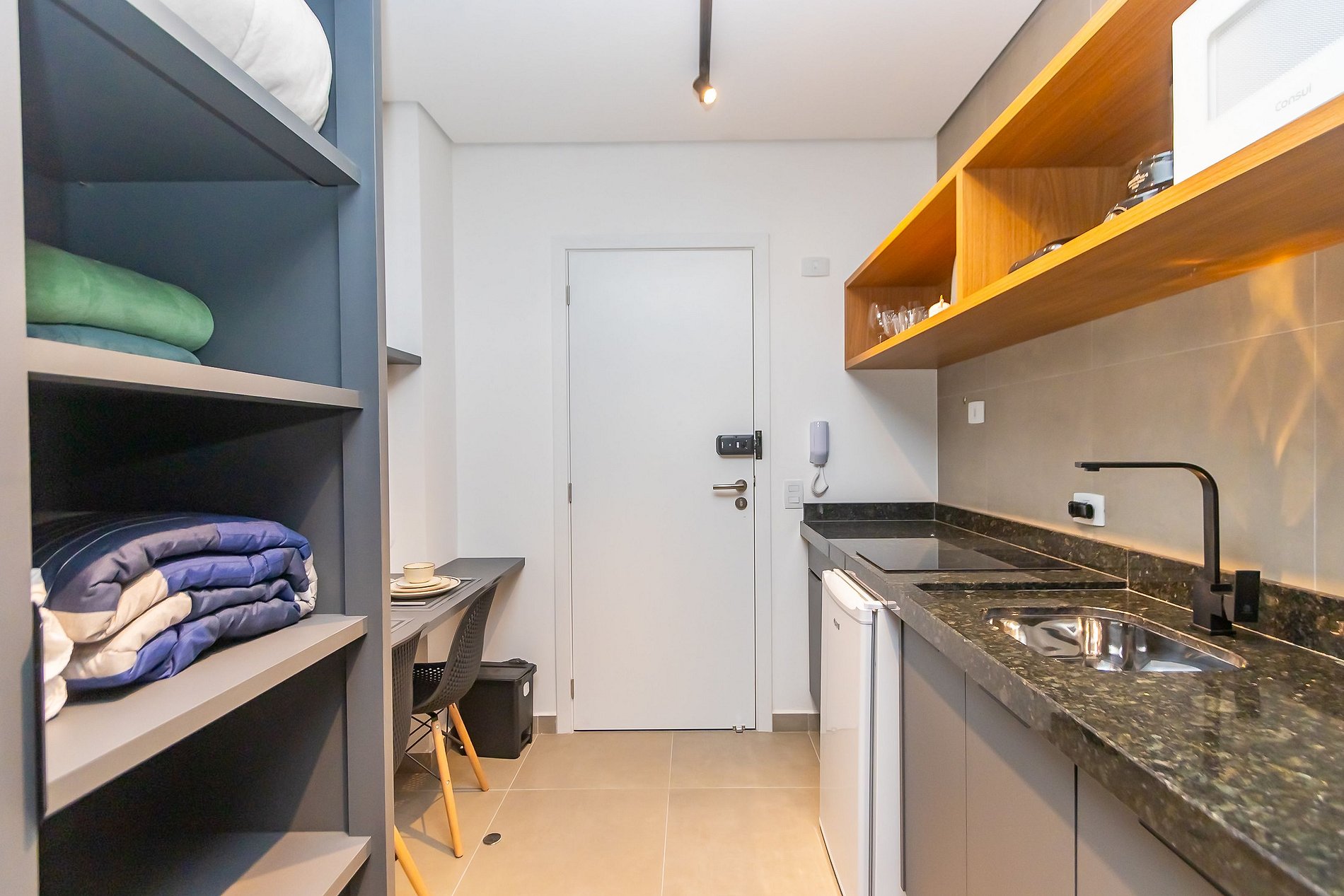 ⌂ Estúdio Plus totalmente mobiliado que oferece as seguintes comodidades aos seus hóspedes: