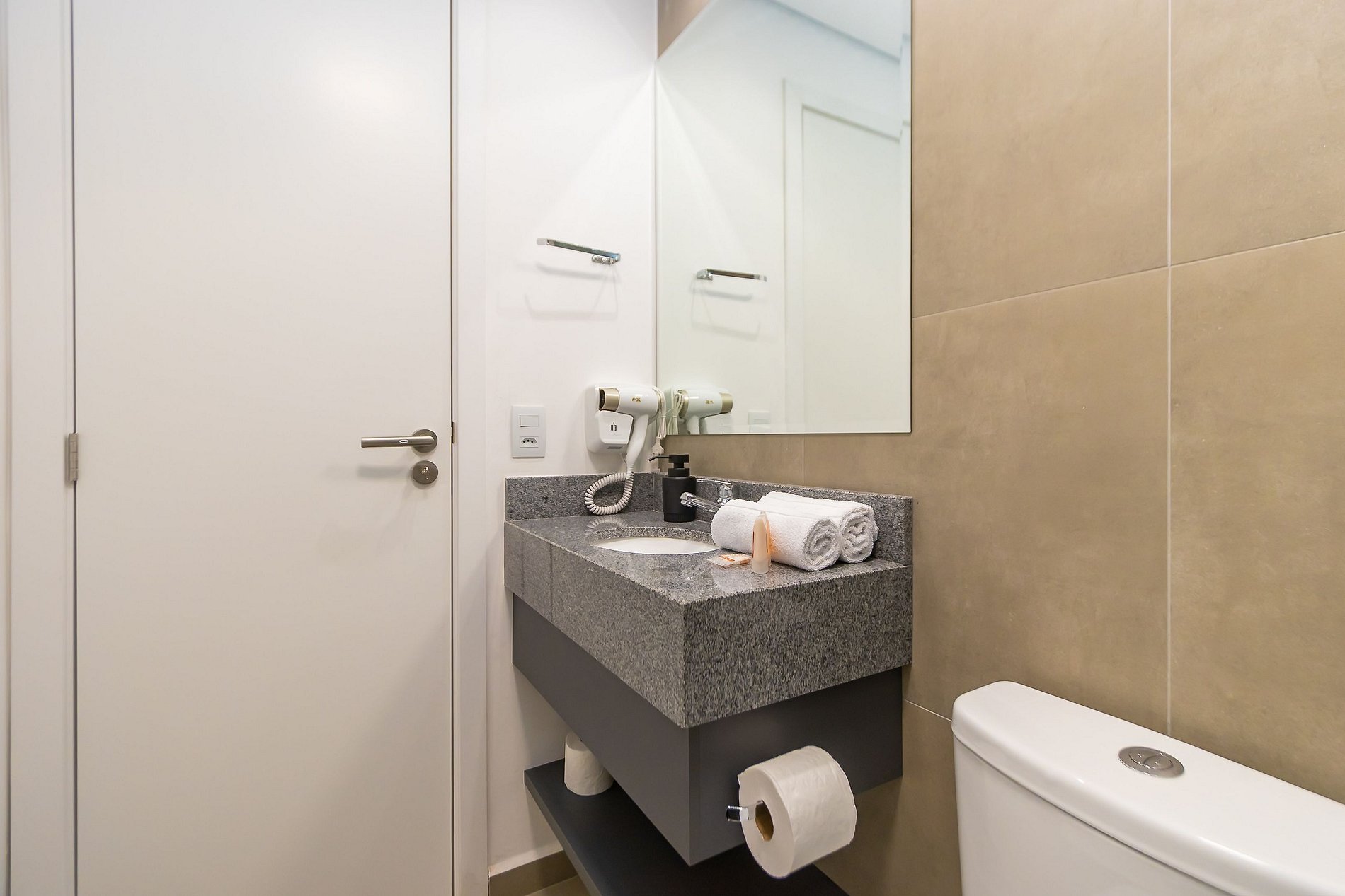 Durante a sua estadia não temos serviço de quarto e nem fazemos a reposição dos itens da sua unidade como: shampoo, condicionador, sabonete, papel higiênico, pano de prato, esponja e detergente de louça, além de pilhas do controle remoto, ar-condicionado e da fechadura eletrônica. A reposição destes itens é de responsabilidade do hóspede titular da reserva.