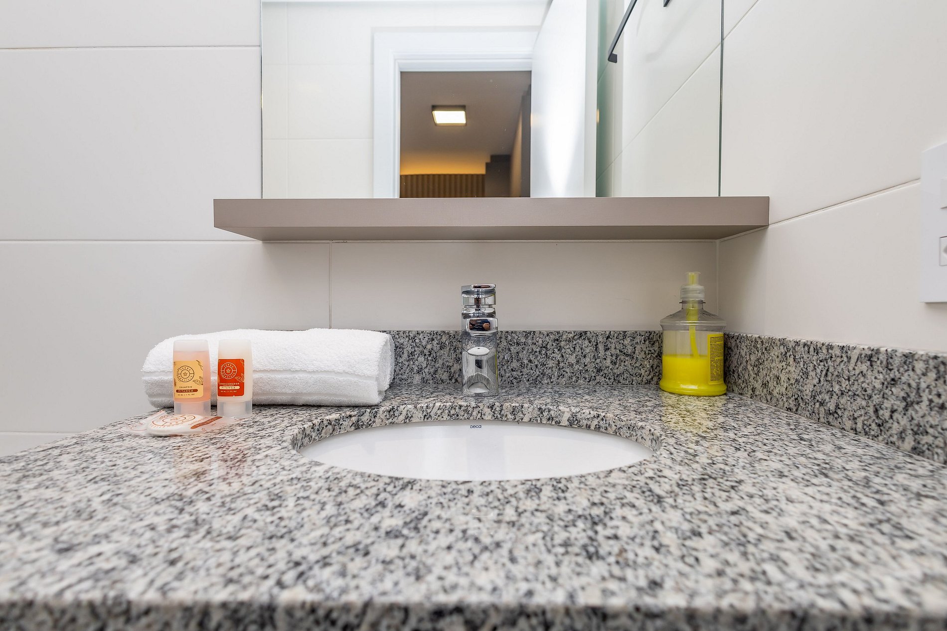 Durante a sua estadia não temos serviço de quarto e nem fazemos a reposição dos itens da sua unidade como: shampoo, condicionador, sabonete, papel higiênico, pano de prato, esponja e detergente de louça, além de pilhas do controle remoto, ar-condicionado e da fechadura eletrônica. A reposição destes itens é de responsabilidade do hóspede titular da reserva.