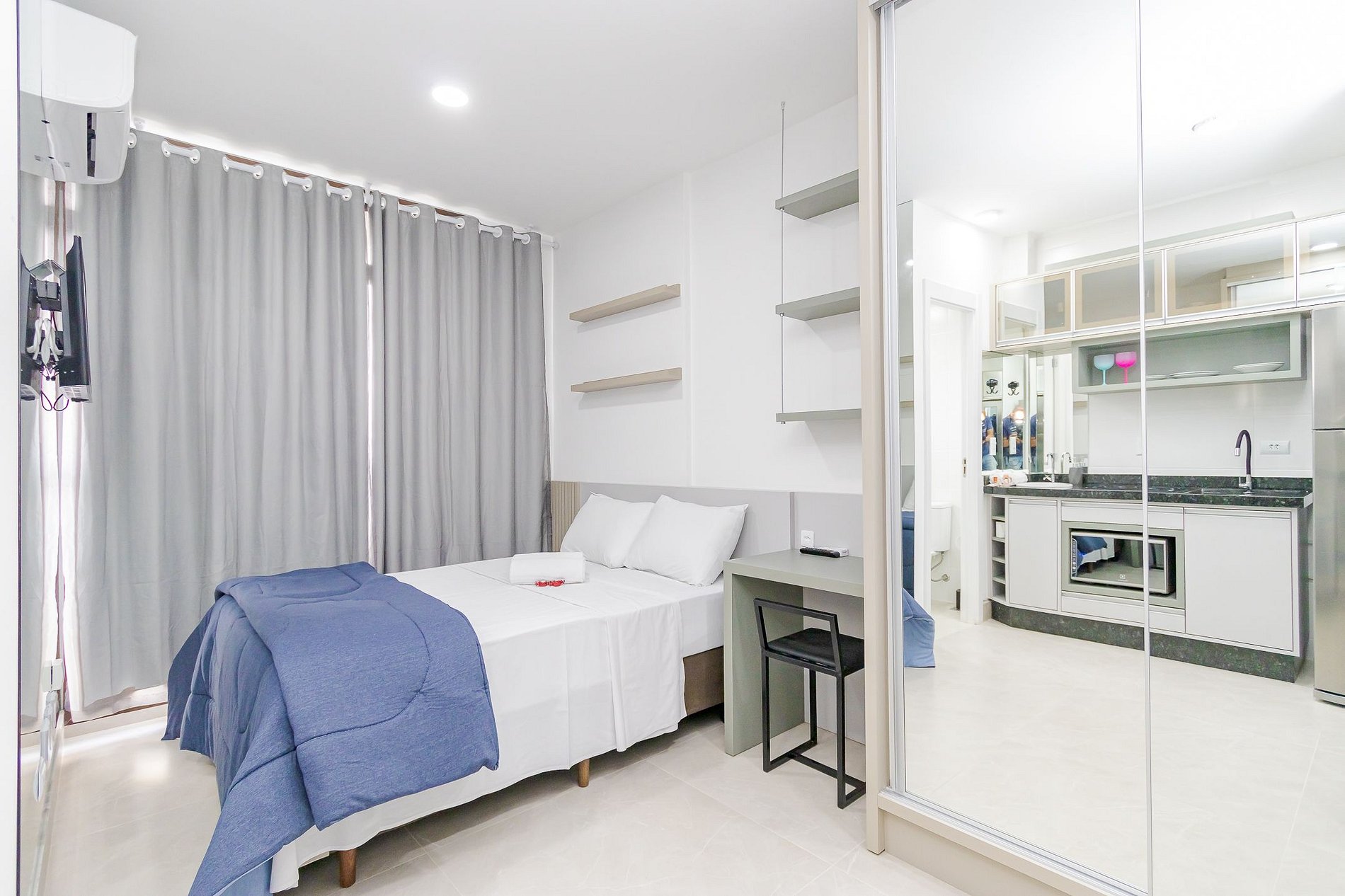 ⌂ Estúdio totalmente mobiliado que oferece as seguintes comodidades aos seus hóspedes: