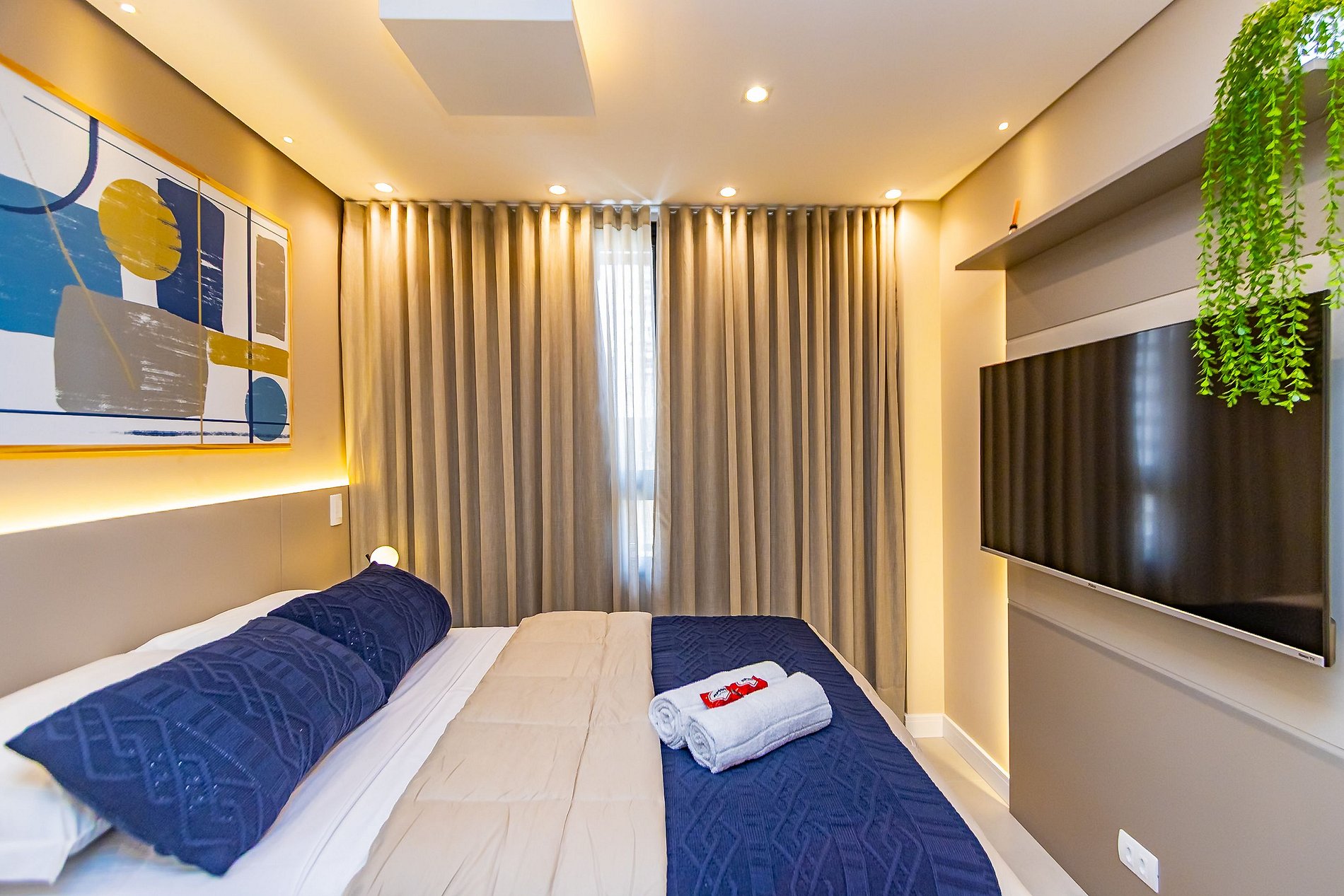 Durante a sua estadia não temos serviço de quarto e nem fazemos a reposição dos itens da sua unidade como: shampoo, condicionador, sabonete, papel higiênico, pano de prato, esponja e detergente de louça, além de pilhas do controle remoto, ar-condicionado e da fechadura eletrônica. A reposição destes itens é de responsabilidade do hóspede titular da reserva.
