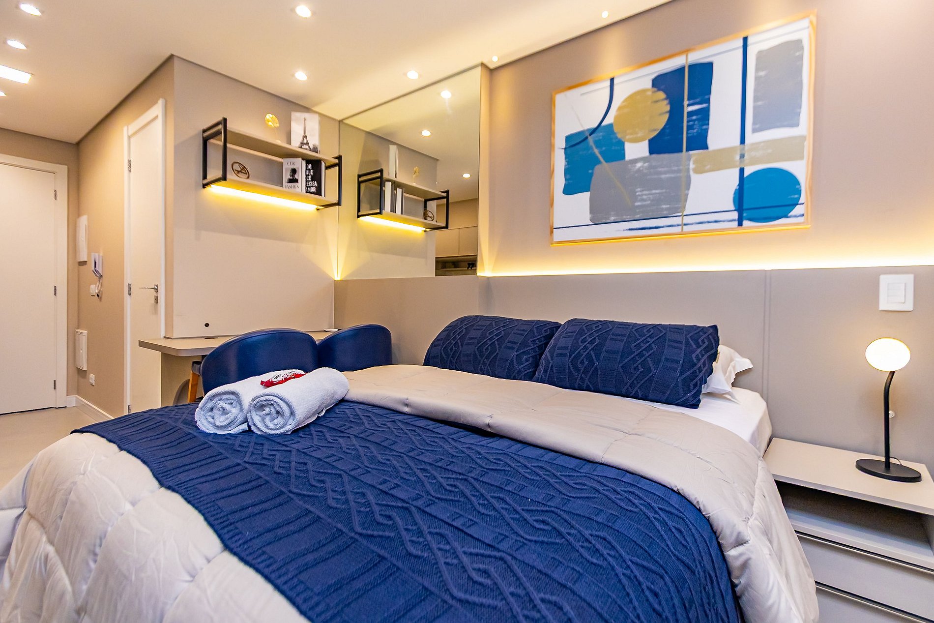 ⌂ Studio totalmente mobiliado que oferece as seguintes comodidades aos seus hóspedes: